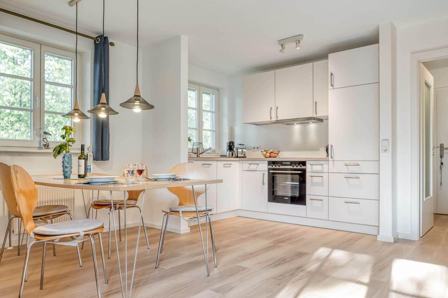 Die gut ausgestattete Wohnung mit Wohn-Essbereich empfängt Sie mit einer wohnlichen und gemütlichen Atmosphäre. Die integrierte Küche ist hell und freundlich. Zur Wohnung gehören die große Westterrasse, ein Bad mit Dusche, WC und Waschmaschine. Im Schlafzimmer im Obergeschoss steht ein Ehebett und ein zweites Fernsehgerät. Zur Wohnung gehört ebenfalls ein eigener PKW-Stellplatz.