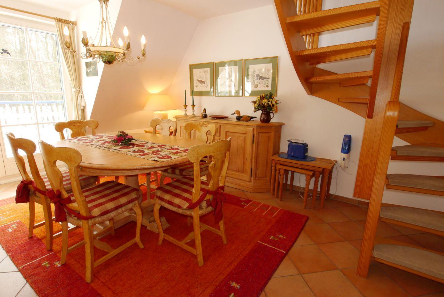 Die Maisonettwohnung hat einen Wohnessbereich mit Südbalkon, eine separate Küche, Dusche, Dusche, WC und Waschmaschine und ein Schlafzimmer mit Ehebett. Auf der oberen Etage befindet sich das zweite Schlafzimmer ebenfalls mit Ehebett und weitere Fernsehgerät.