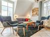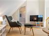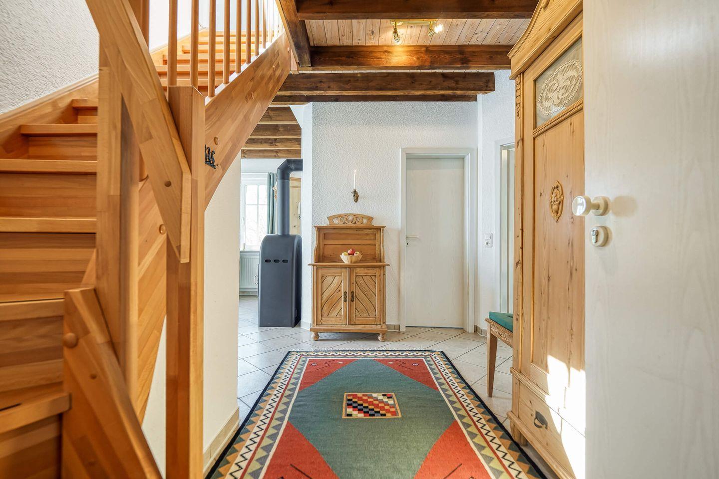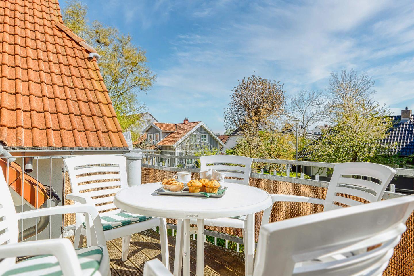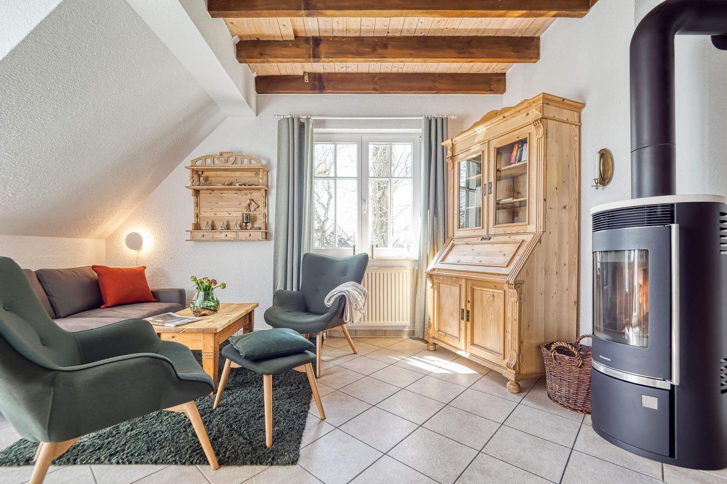 Die 75 qm große Maisonettewohnung bietet 5 Schlafplätze (90 cm x 200 cm). Ein Schlafzimmer verfügt über ein Doppelbett, ein Schlafzimmer über zwei Einzelbetten, und ein Bett befindet sich im DG in einer Nische, getrennt vom Wohnbereich.