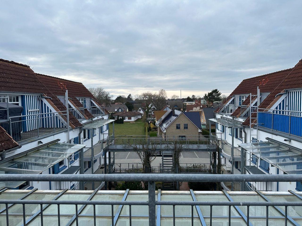 Die Wohnebene umfasst den Wohnraum(von hier gelangen Sie auch auf den Südbalkon mit Blick auf den Hafen und das Boddengewässer), eine integrierte Küche und das Bad mit Dusche und WC.
