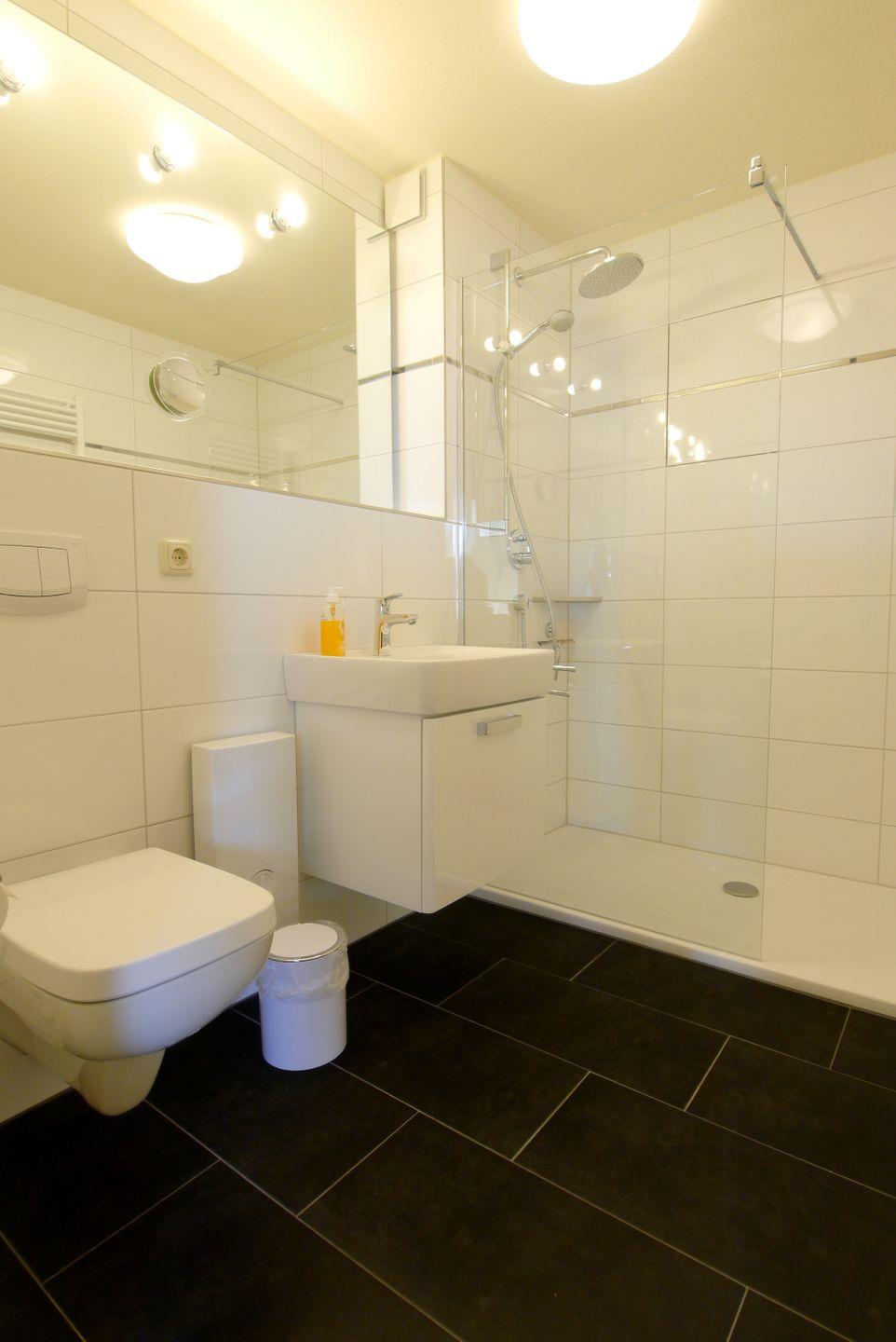 Die 97qm große Eckwohnung befindet sich im 2.OG und wird für max 4 Personen vermietet. Auf einer Ebene befinden sich Küche, das Bad mit begehbarer Dusche und WC, 1 Schlafzimmer mit Doppelbett und Zugang zum Ostbalkon sowie der grosse Wohnraum mit einem Süd-Ostbalkon. Auf der oberen Ebene befindet sich ein grosses Wohnschlafzimmer mit 2 Einzelbetten, ein Bad mit begehbarer Dusche und WC, einem 2.TV-Gerät und ein Balkon zur Westseite. Ein Tiefgaragenplatz gehört zur Wohnung dazu. Münzwaschmaschinen finden Sie im Keller des Hauses.