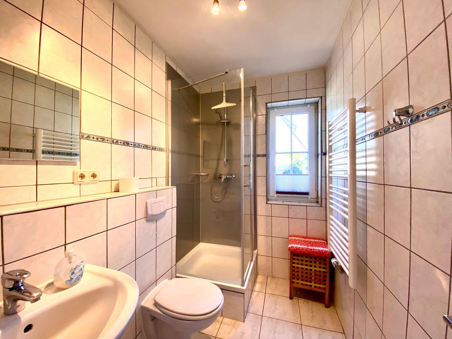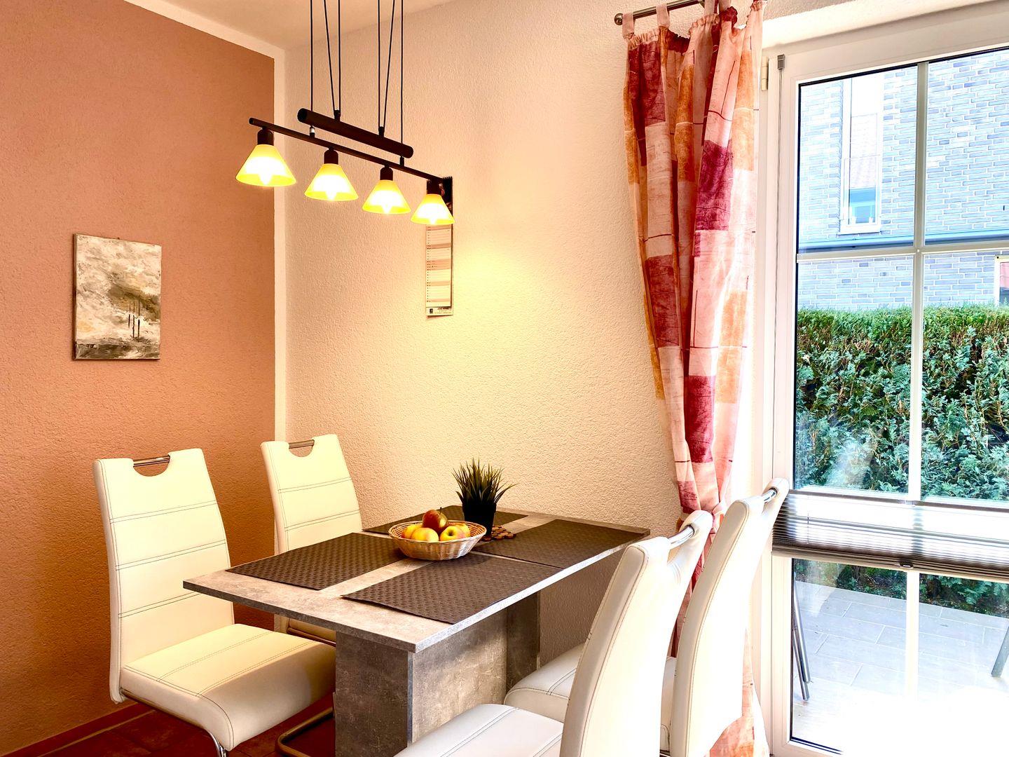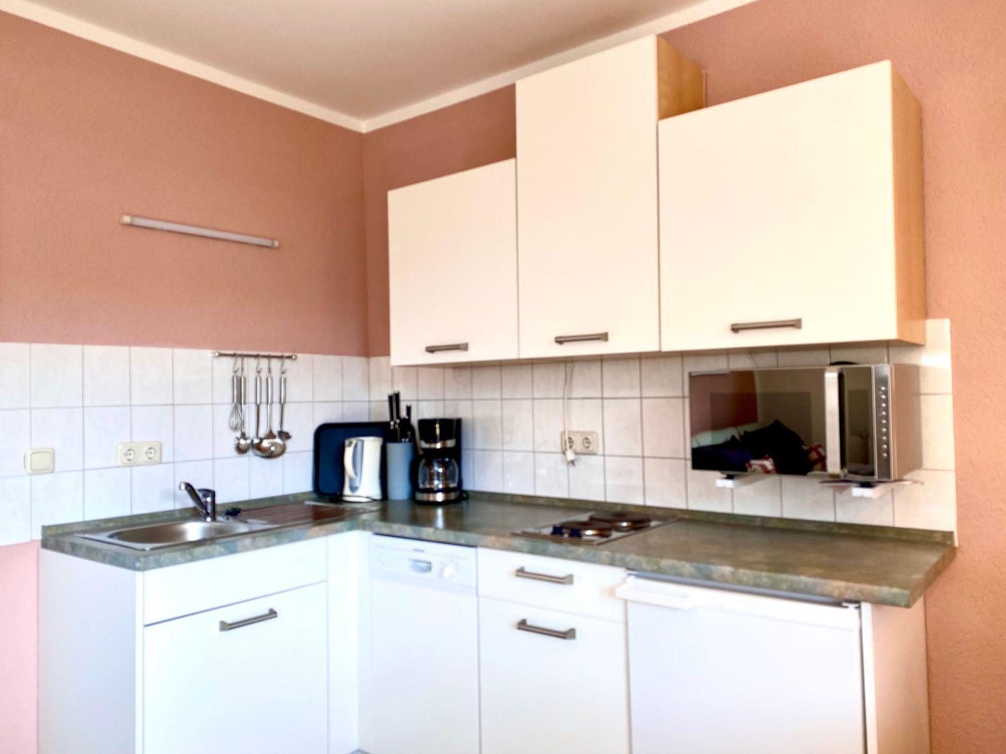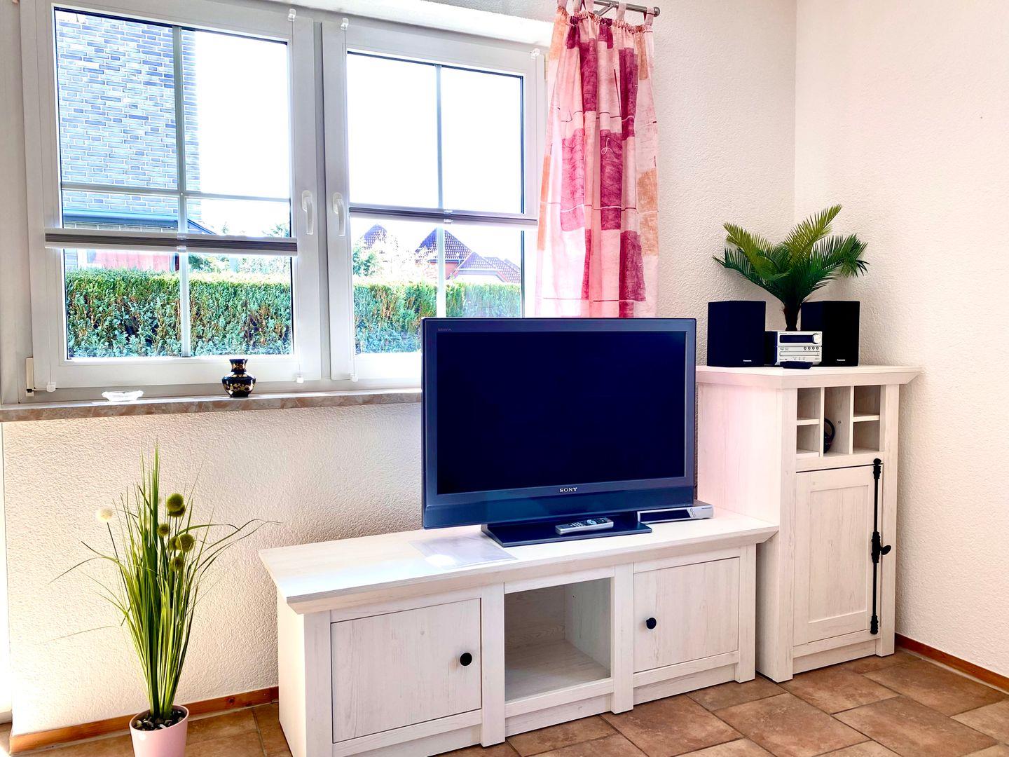 In einem gepflegten Garten befindet sich das Haus Ankerplatz mit der Fewo "Bootsdeck". Diese ca 45m² große Ferienwohung liegt im Erdgeschoss und wird für maximal zwei Erwachsene und ein Kind angeboten. Im Wohnzimmer befinden sich eine integrierte Küche und eine Essecke. Von hier gelangen Sie auf die große Terasse, die zur Südseite ausgerichtet ist. Ihnen steht ein Schlafzimmer mit Doppelbett und eine Schlafcouch im Wohnzimmer zur Verfügung. Das Bad hat ein Fenster und ist mit einer neuen Glasdusche und WC sowie Handtuchtrockner ausgestattet. In der Küche befindet sich eine Mikrowelle mit Grill und Backfunktion. In der Fewo ist in jedem Zimmer mindestens ein Fenster mit Fliegengitter vorhanden.