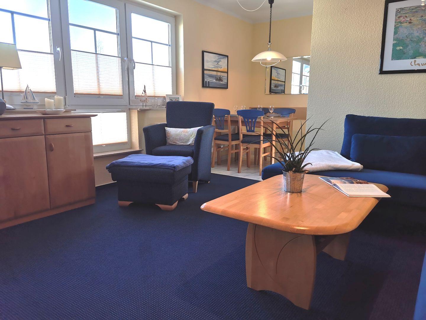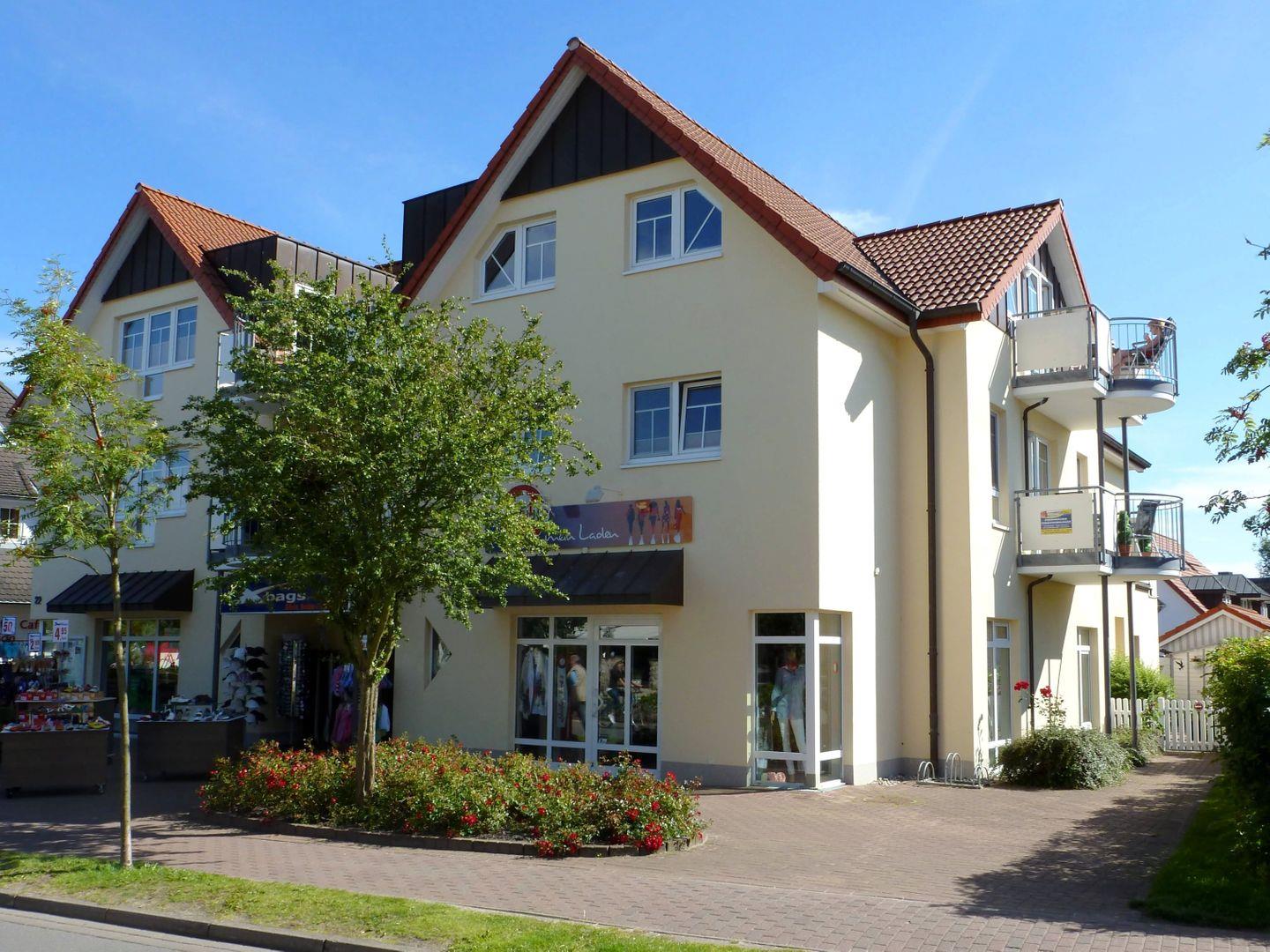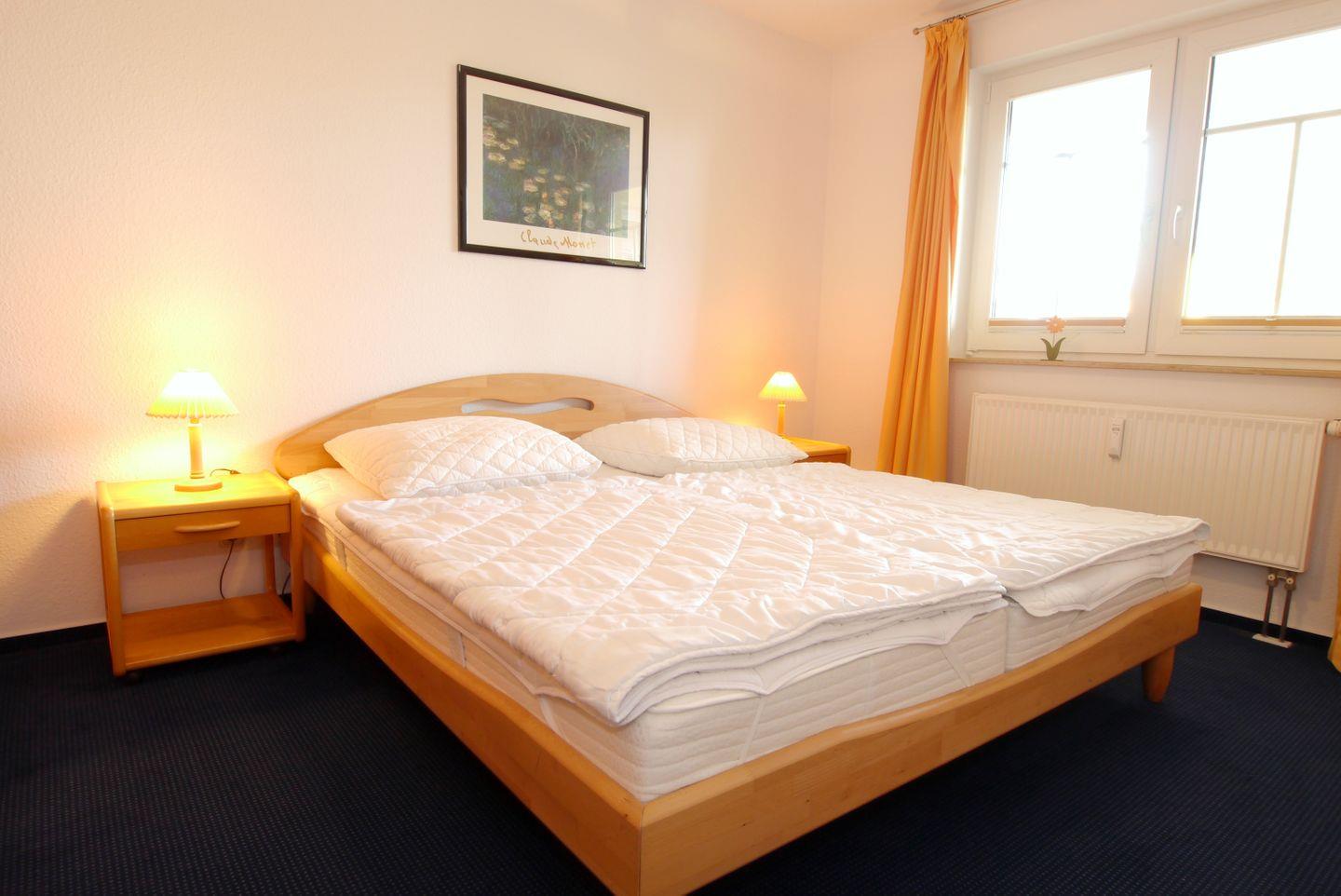 Die im 1. OG gelegene 64 qm große Wohnung wird für max. 4 Erwachsene vermietet. Das zentral gelegene Objekt hat einen großen Wohnraum, eine voll ausgestattete separate Küche, 2 Schlafzimmer (1x Doppelbett und 1x französisches Bett) sowie ein Badezimmer mit Dusche und WC. Der Nordbalkon lädt zum Beobachten des Geschehens ein. Ein Gemeinschaftsfahrradschuppen sowie 1 Pkw-Stellplatz sind ebenfalls vorhanden.