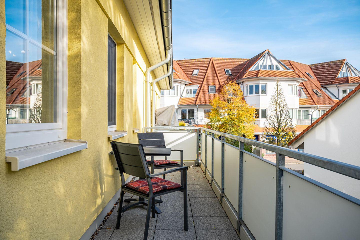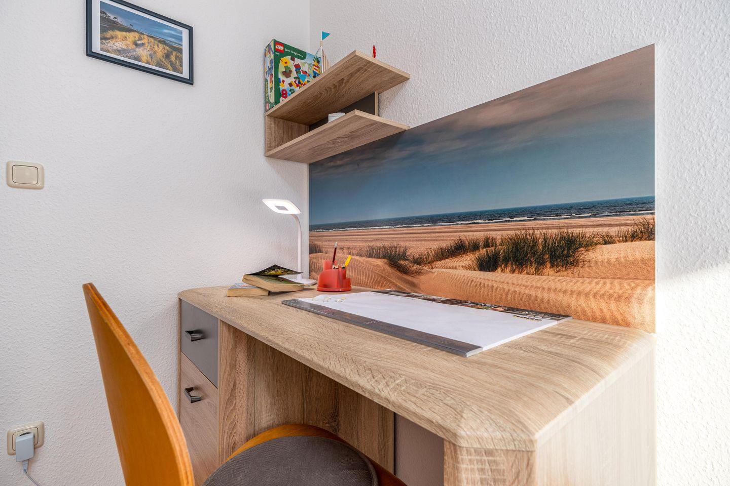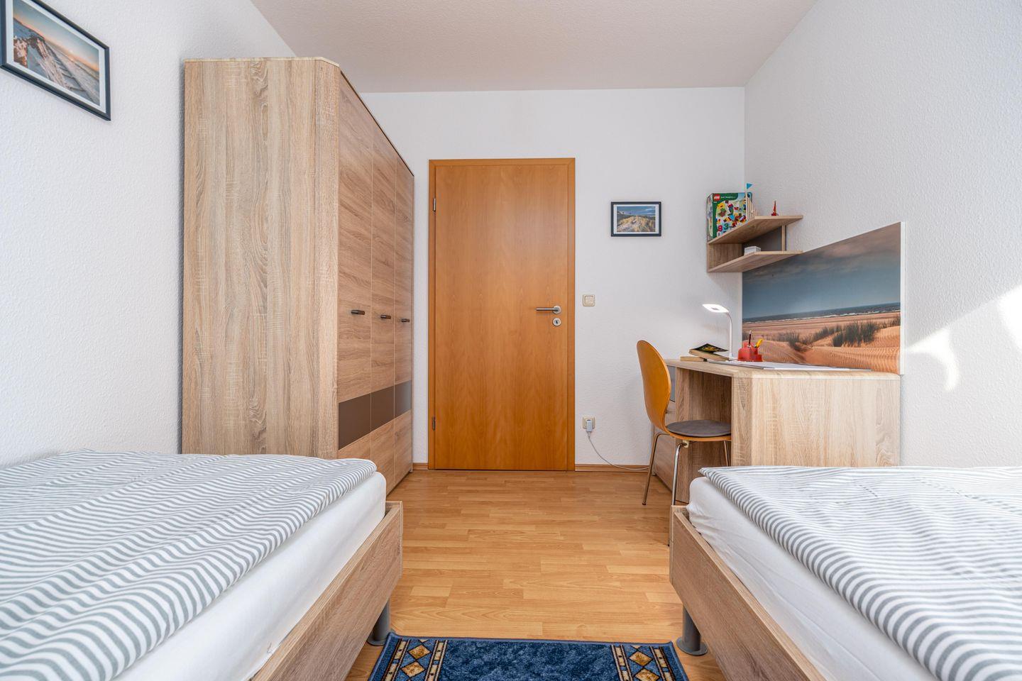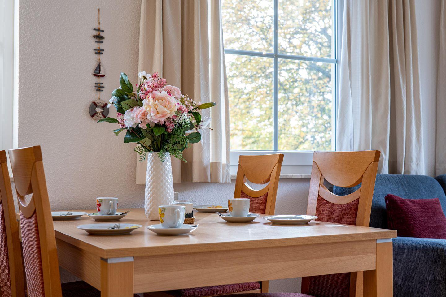 Die 60 m² große Wohnung liegt im 1. Obergeschoss und kann mit maximal 2 Erwachsenen + 2 Kindern angemietet werden. Der Wohnbereich ist aufgeteilt in die integrierte Küche und Essecke sowie einen großzügigen Sitzbereich, von hier aus erreichen Sie auch den Süd-Westbalkon. Es sind zwei Schlafzimmer vorhanden, eines ist mit einem Doppelbett und ein weiteres mit zwei Einzelbetten ausgestattet. Das Badezimmer verfügt über Dusche und WC. Für die Fahrräder steht ein Fahrradschuppen zur Verfügung.