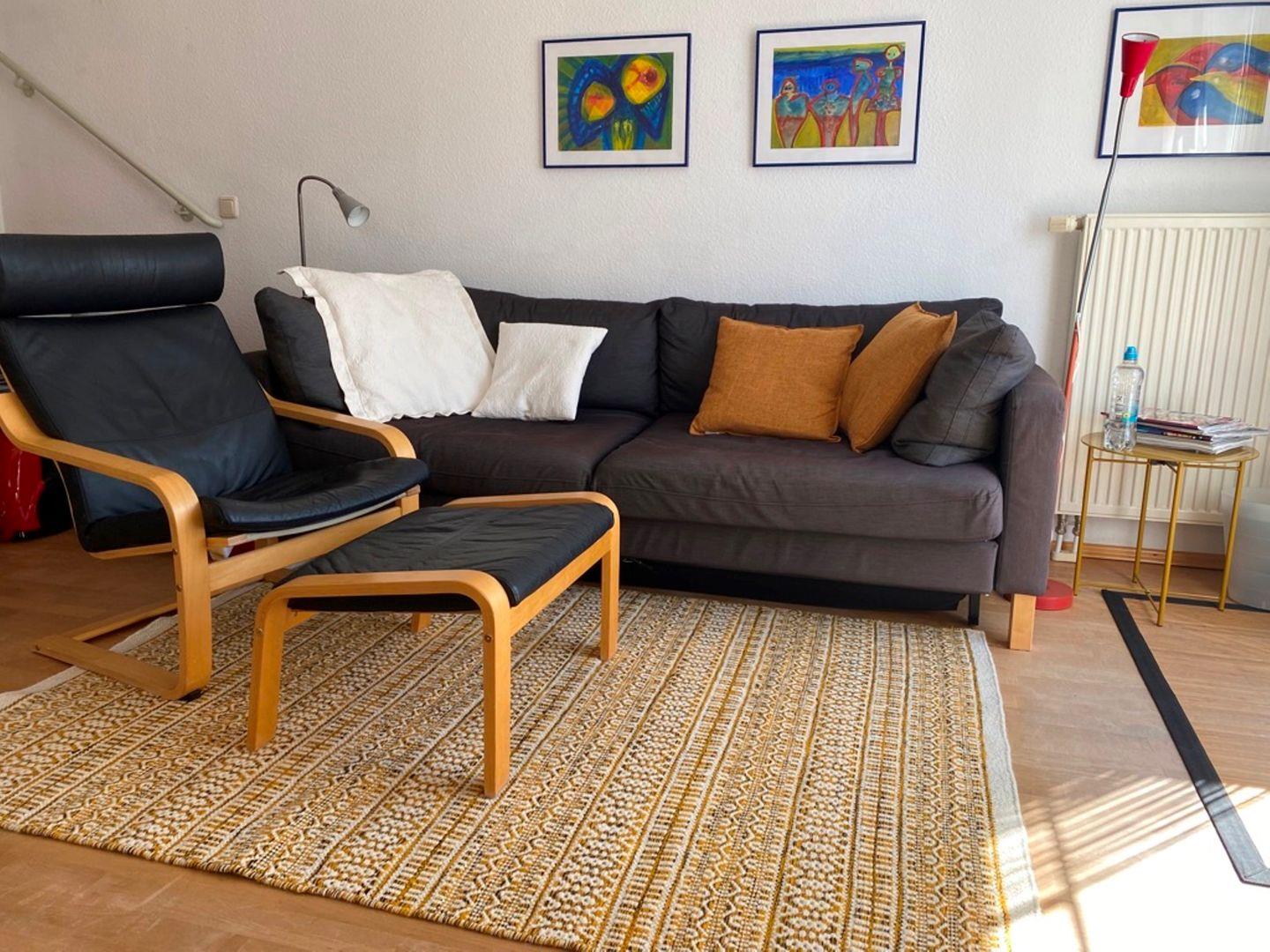 5 min zu Fuß vom Strand und von der Zingster Hauptstraße entfernt, liegt die ruhige drei Zimmer Wohnung für maximal 4 Personen. Die 50 m² große lichtdurchflutete Wohnung auf zwei Etagen ist gemütlich eingerichtet und mit Bildern der Berliner Künstlerin Bärbel Brockstedt versehen.