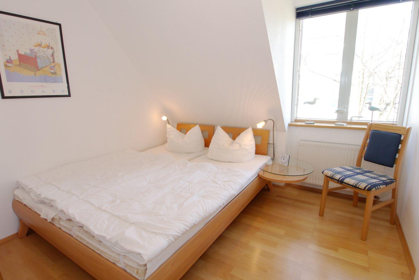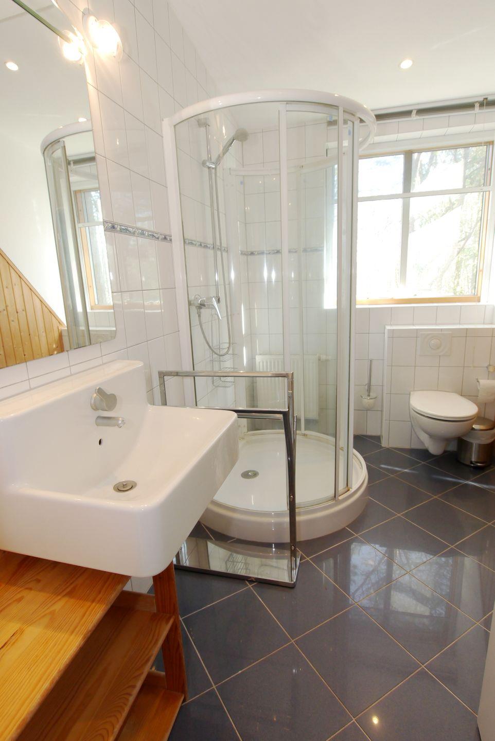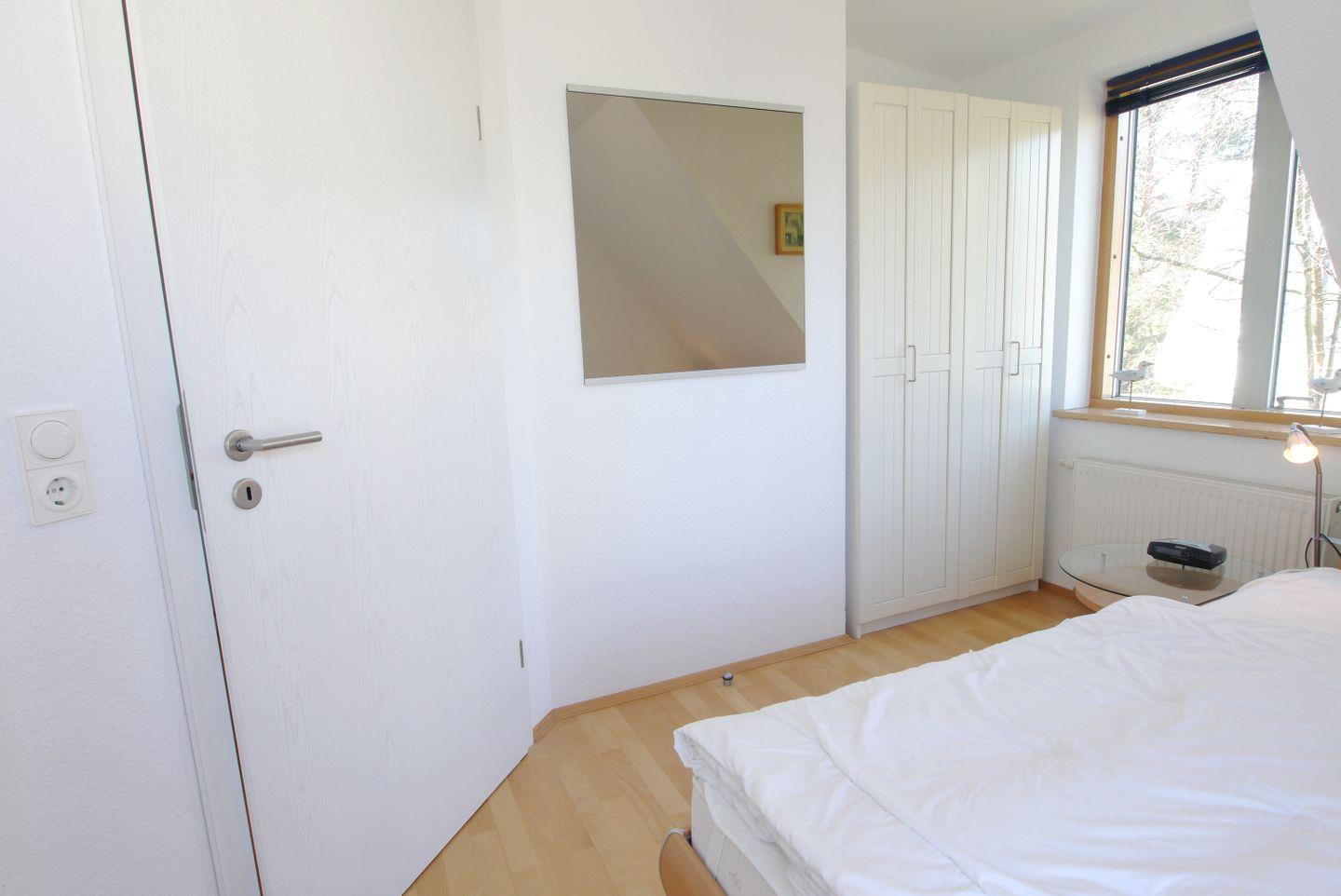 Nur wenige Minuten hinter dem Ostseedeich liegt diese schöne Haushälfte. Das Haus wird für max. 6 Personen vermietet. Unten sind das Wohnzimmer mit Essbereich und Zugang zur Westterrasse, die separate Küche und ein Bad mit Dusche und WC. Oben befinden sich drei Schlafzimmer mit jeweils einem Ehebett und ein weiteres Bad mit Dusche und WC. Vorhanden sind auch eine Sauna sowie eine Waschmaschine mit Trockner.