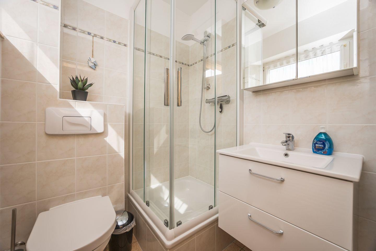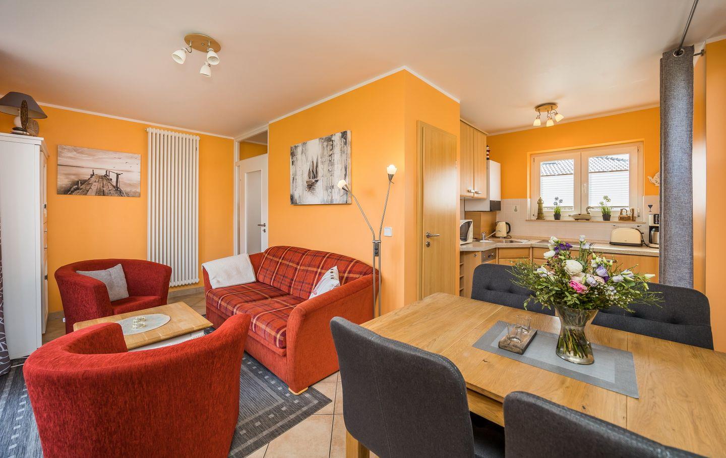 Der Strand und der Hafen, Einkaufsmöglichkeiten und zum Beispiel das Kurmittelzentrum mit Möglichkeiten zum Saunieren und Entspannen sind in wenigen Gehminuten erreichbar.