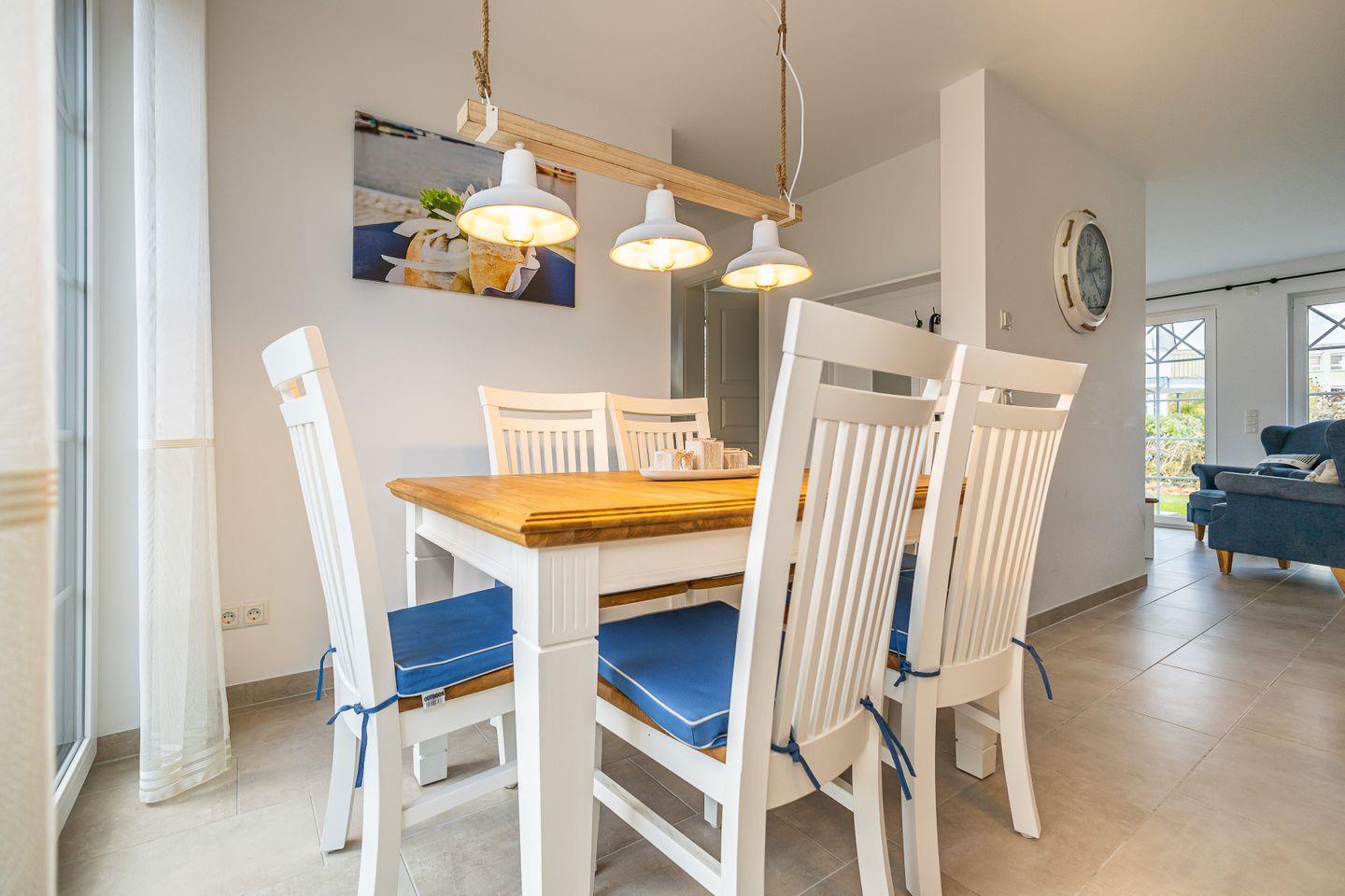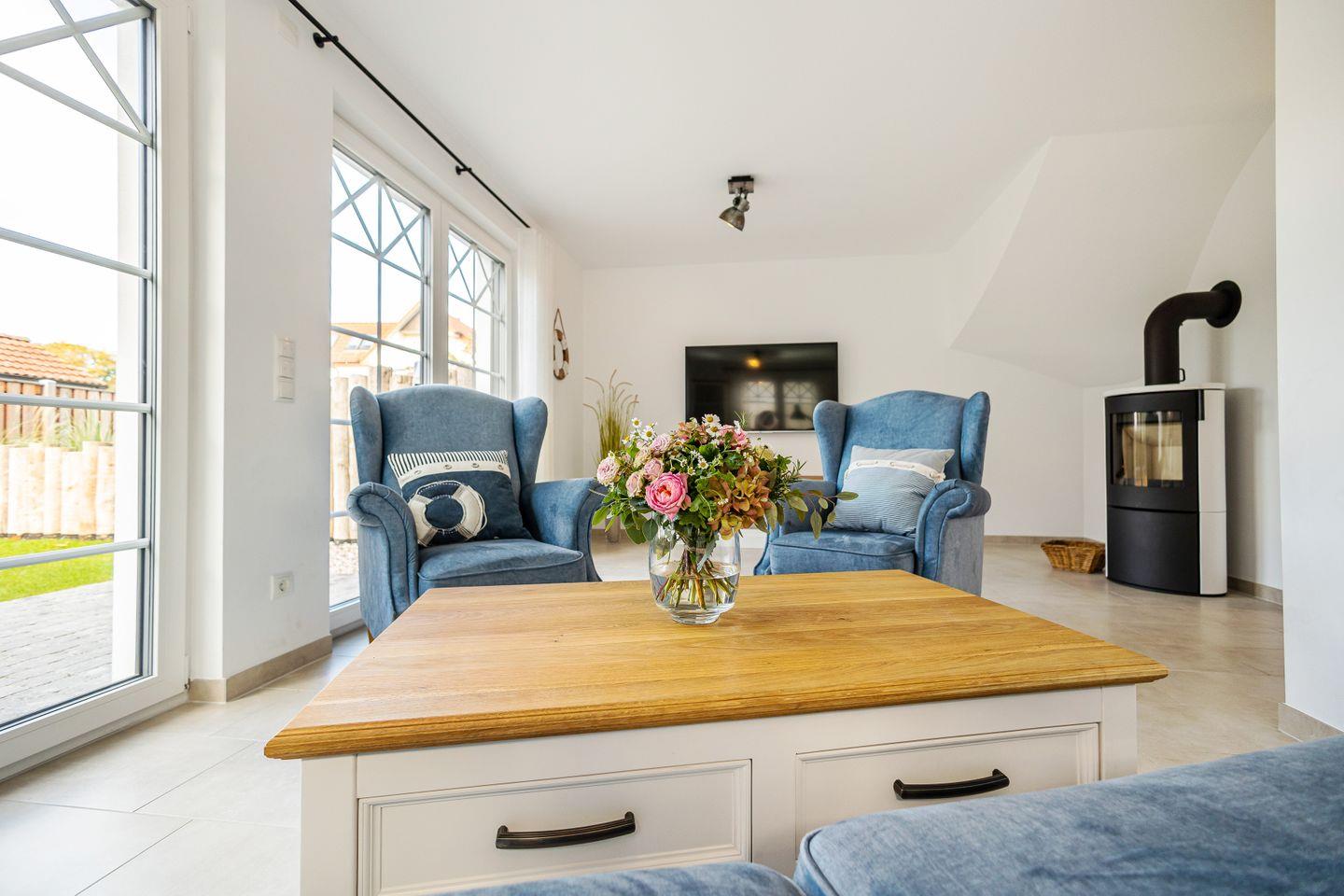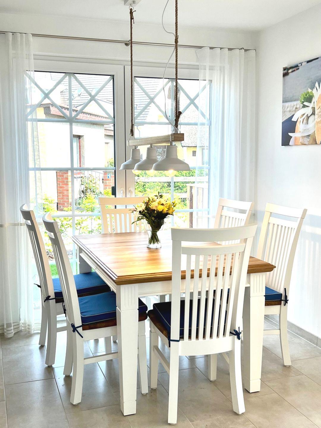 Zentral gelegene Doppelhaushälfte mit 100qm Wohnfläche. Das Haus wird für max. 4 Erwachsene + 2 Kinder vermietet. Im Erdgeschoss befindet sich der Wohnraum mit Essecke und separater Küche, sowie ein Bad mit Dusche und WC. Im 1. OG stehen Ihnen 2 Schlafzimmer und ein weiteres Bad mit Dusche, Münzsauna und WC zur Verfügung. Im Dachgeschoss finden Sie ein weiteres Schlafzimmer mit 2 Einzelbetten. Genießen Sie Ihre Auszeit auf der West-Terrasse. Kaminofen, kostenloses WLAN und Fliegengitter sind weitere Annehmlichkeiten des Objektes.