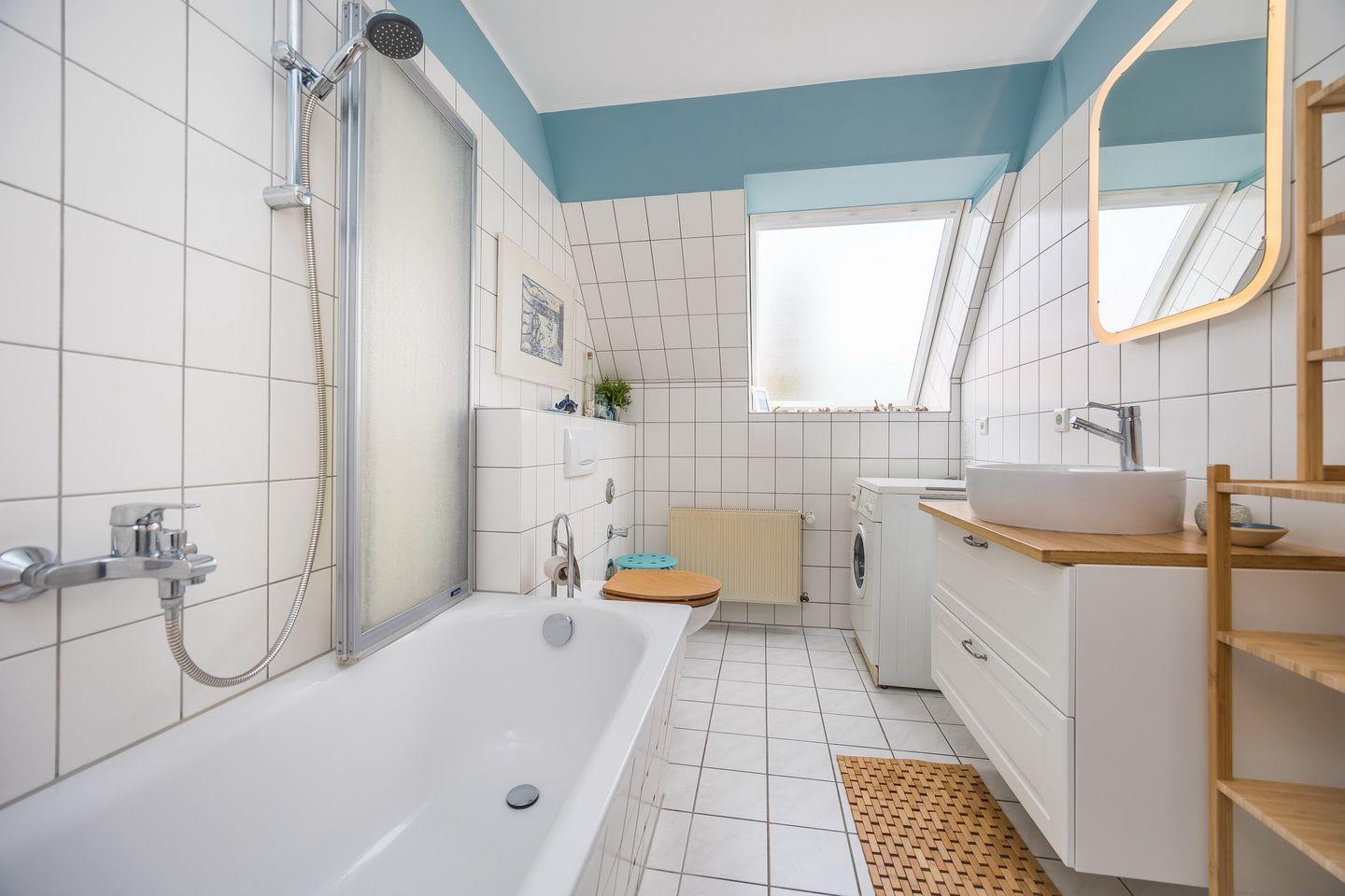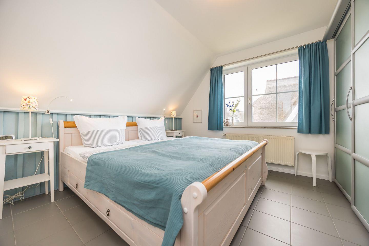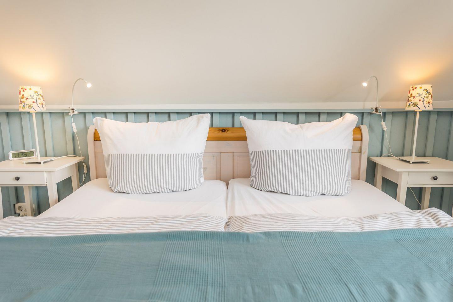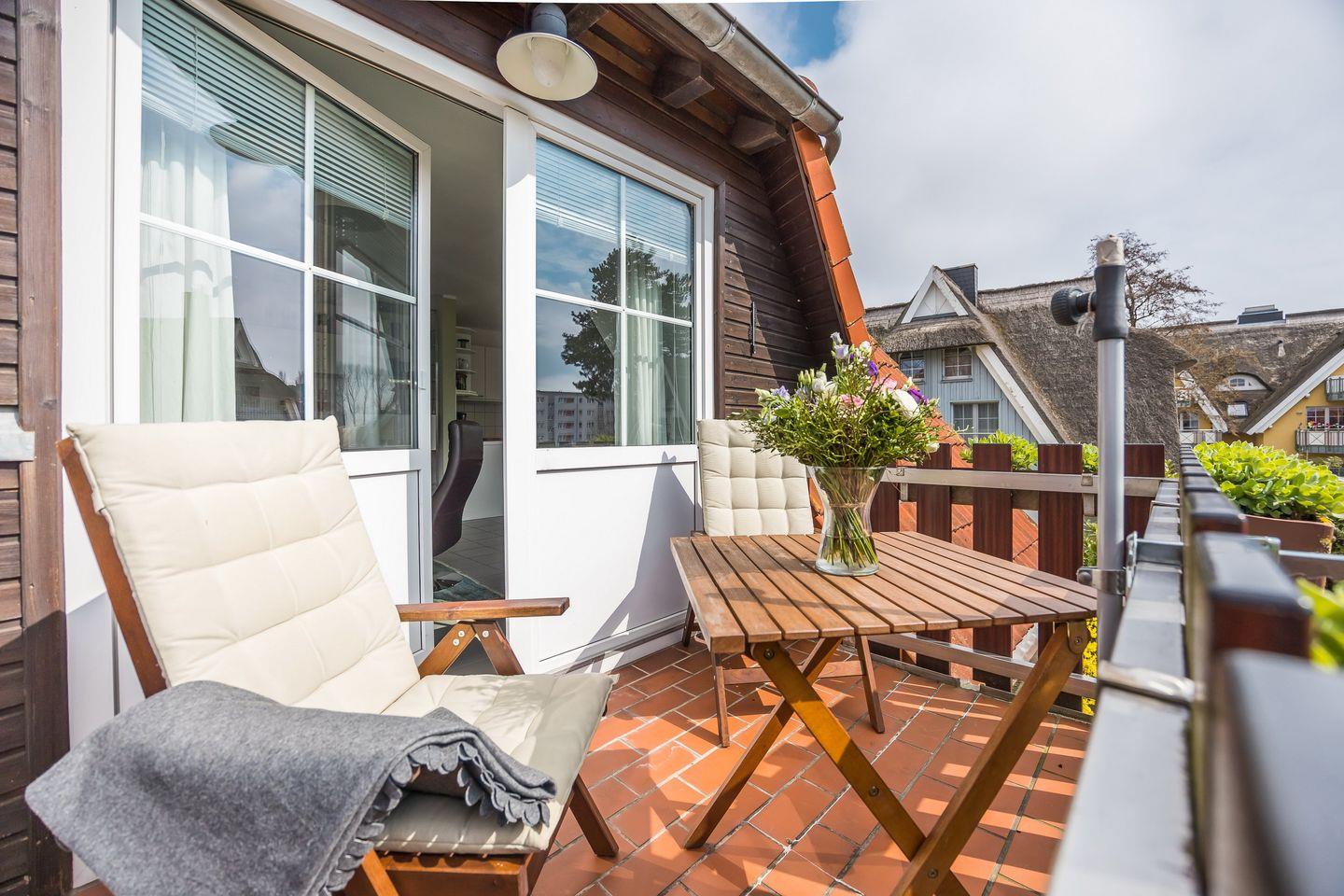 Die 57 qm große Obergeschosswohnung wird für bis zu 2 Personen vermietet. Das große modern eingerichtete Wohnzimmer ist der Mittelpunkt der Wohnung, hier befindet sich auch ein kleiner Essbereich und die integrierte Küche. Der Zugang zum hellen Südbalkon erfolgt ebenfalls von hier. Das Schlafzimmer ist mit einem Doppelbett ausgestattet, im Badezimmer sind eine Badewanne und die Waschmaschine zu finden. Die Wohnung ist komplett gefliest und haustierfrei, daher auch für Allergiker eine gute Wahl. Zudem verfügt sie über zwei Stellplätze im abschließbaren Fahrradraum.
