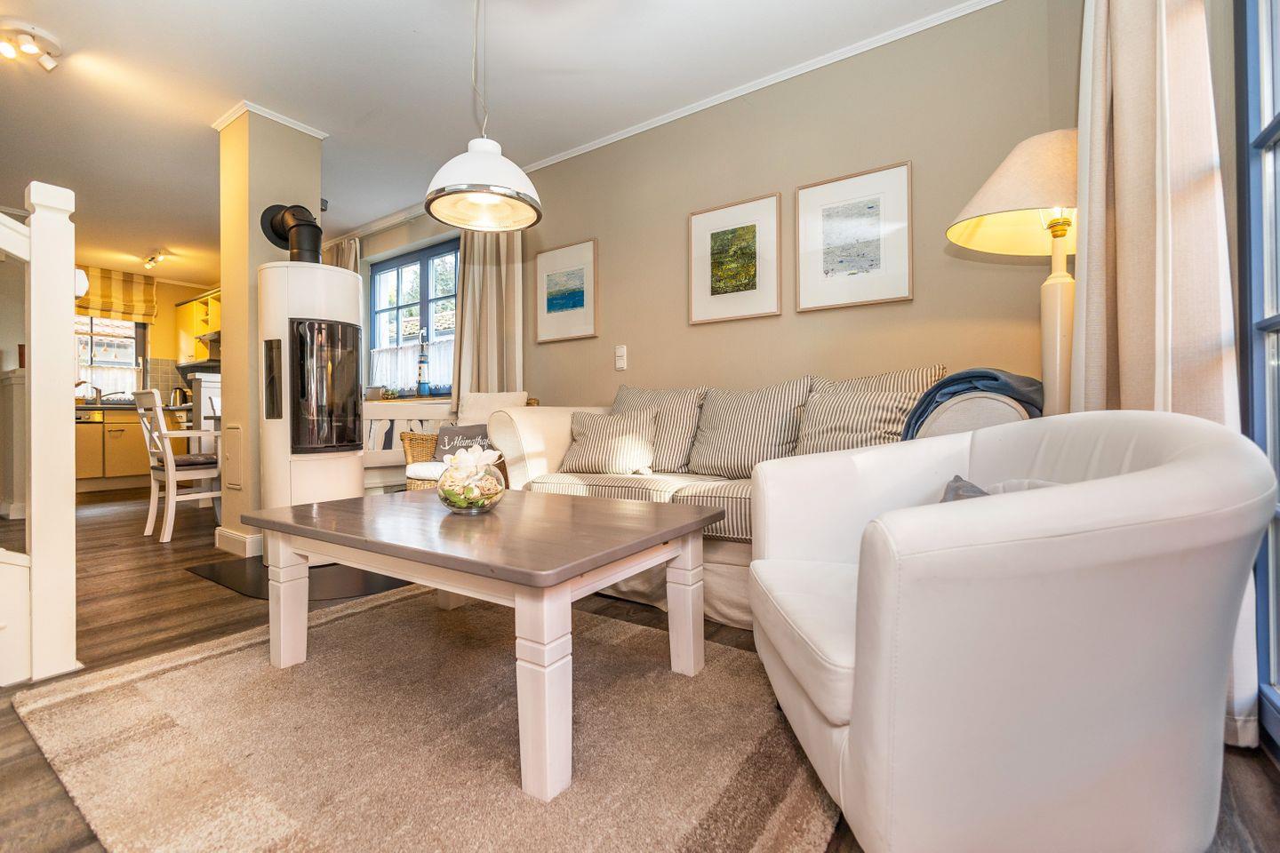 Es sind in beiden Schlafzimmern TV-Geräte vorhanden. Auf der Terrasse befindet sich ein Strandkorb. Für Ihre Fahrräder steht ein Schuppen zur Verfügung.
