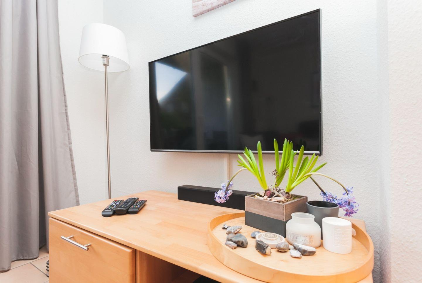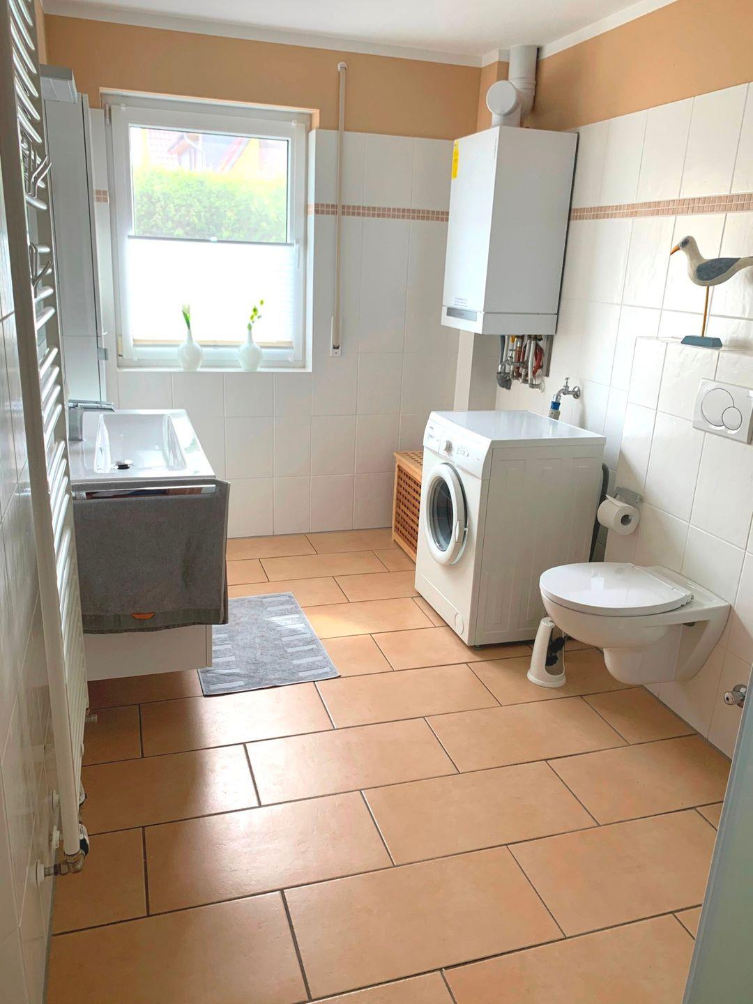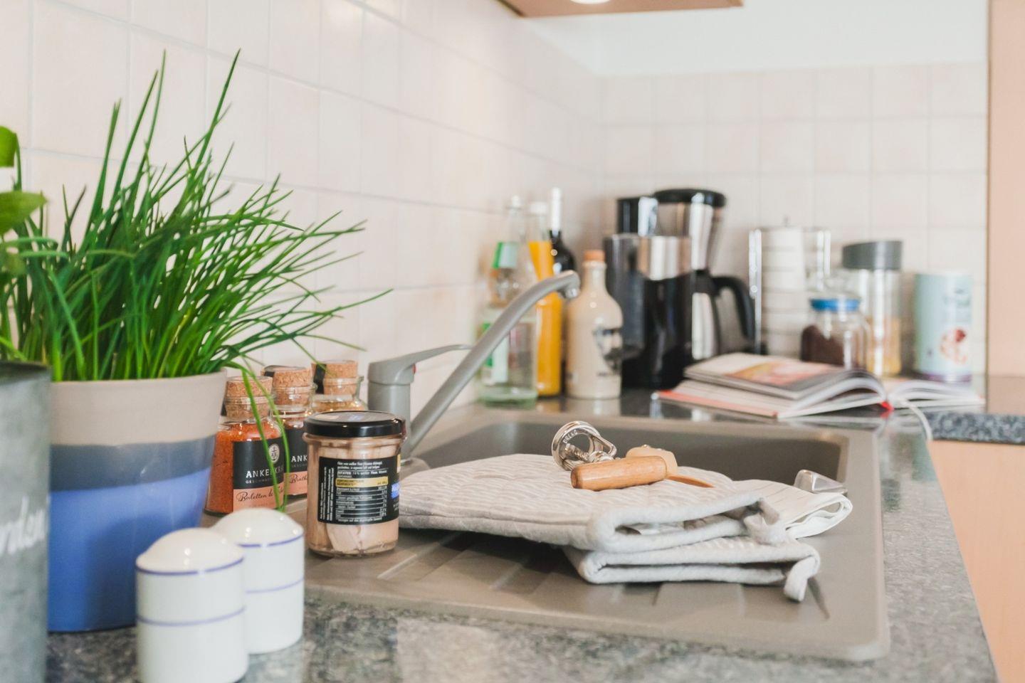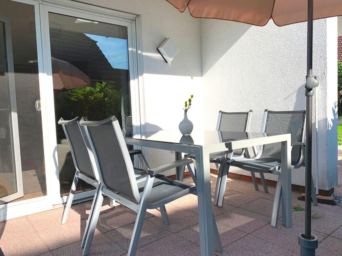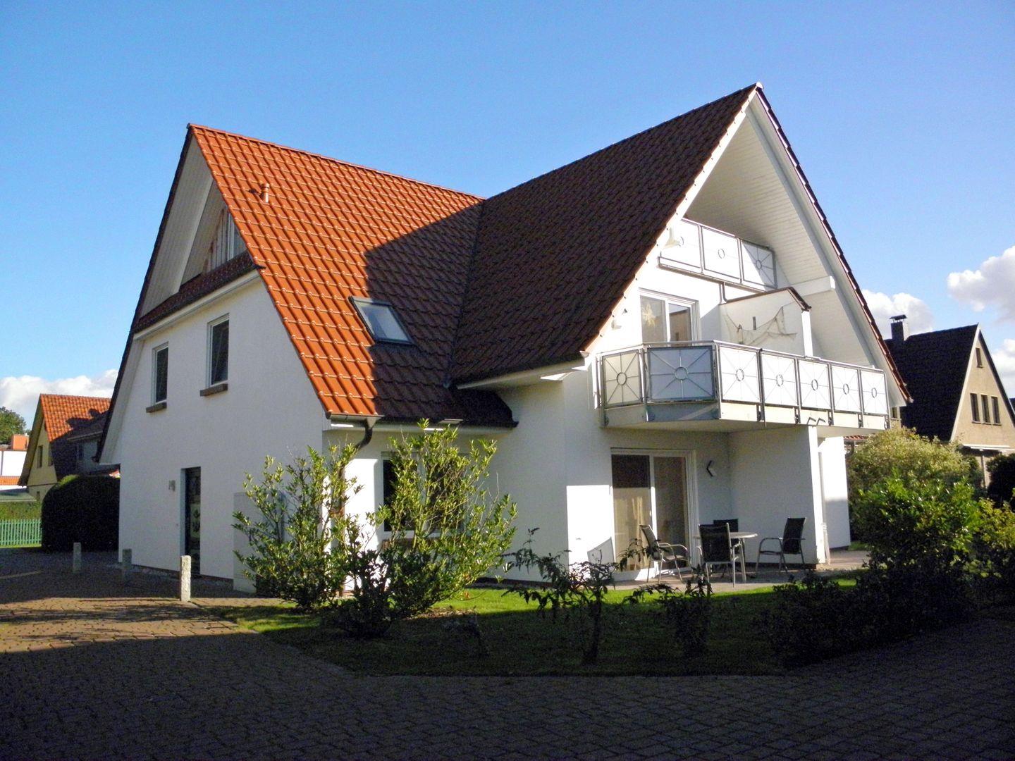 Die schöne, 65 m² große Erdgeschosswohnung liegt nur 400 Meter oder etwa 5 Gehminuten vom Strand bei der beliebten zentralen Seebrücke entfernt. Sie kann mit bis zu 4 Personen angemietet werden und ist ohne Absätze erreichbar. In das behagliche Wohnzimmer mit Zugang zur möblierten Westterrasse ist die Küche integriert und auch eine Essecke mit ausziehbarem Esstisch gehört zur Ausstattung. Eines der Schlafzimmer ist mit einem Doppelbett eingerichtet, im anderen stehen zwei einzelne Betten zur Verfügung. Im geräumigen, 2020 renovierten Badezimmer mit moderner Regendusche ist auch die Waschmaschine zu finden, Fliegengitter an den Fenstern und Aussenrollos ergänzen die Einrichtung.