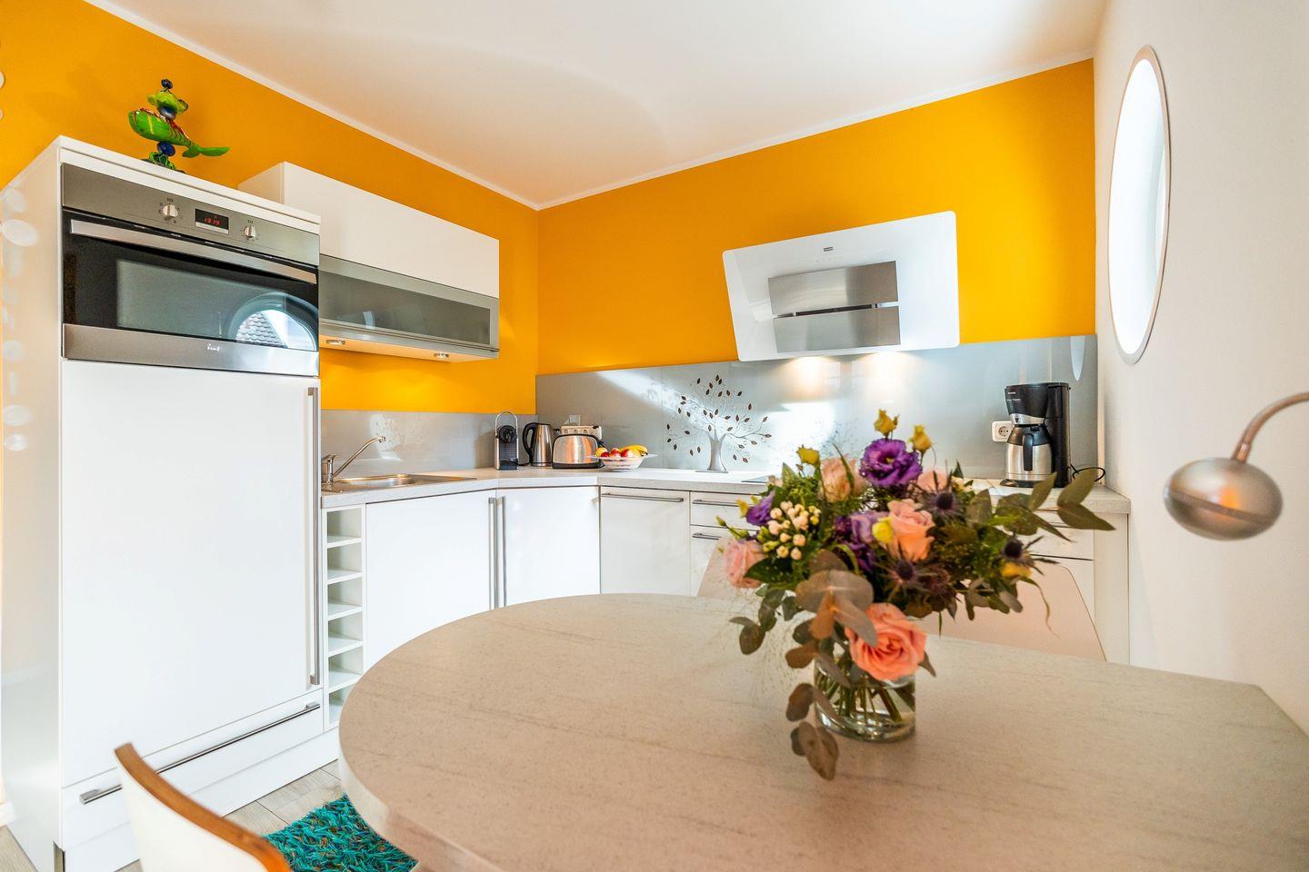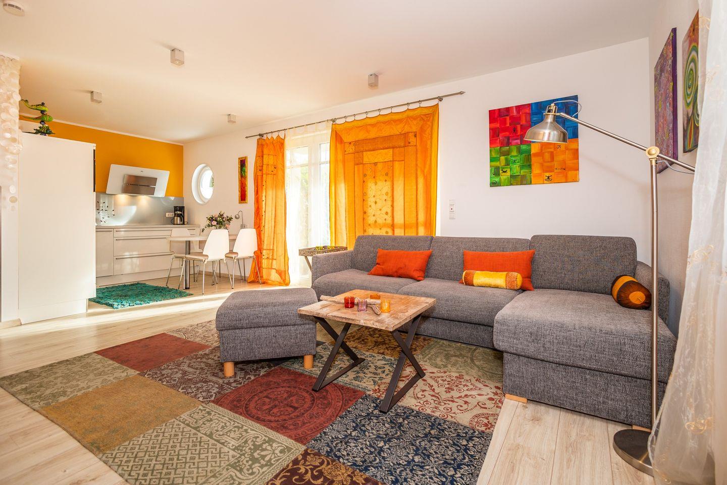 Die individuell und mit Liebe zum Detail eingerichtete barrierefreie ca. 52m² große Erdgeschosswohnung mit einer sonnigen überdachten Südterrasse befindet sich nur wenige Gehminuten vom Herzen Zingst und Strand entfernt und kann mit 2 Personen belegt werden. Neben einer modernen, vollausgestatteten Küche mit integriertem Essbereich befindet sich im Wohnzimmer eine hochwertige, komfortable Schlafcouch. Das Schlafzimmer verfügt über ein großes Ehebett mit Lattenrost.