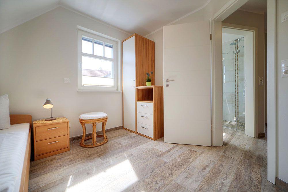 1 Schlafzimmer 2 Einzelbetten (0,90x2,00m), verstellbare Lattenroste