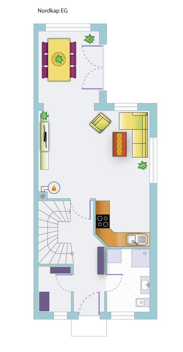 Die Grundrisse beziehen sich auf die Anordnung der Räumlichkeiten, ein Anspruch auf die korrekte Darstellung der Inneneinrichtung besteht nicht.