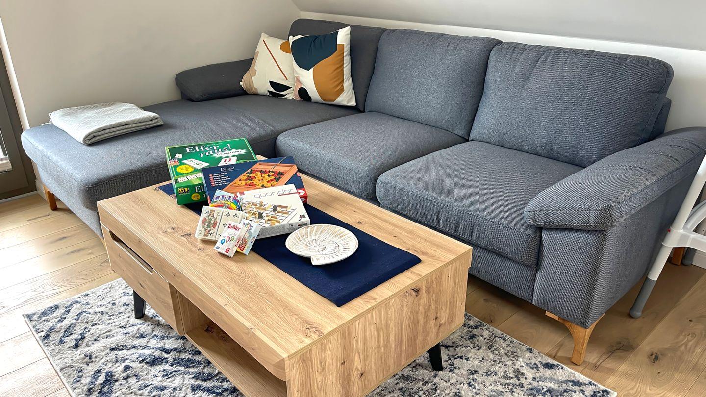 Das große, gemütliche Sofa im Wohnbereich, der kuschlige