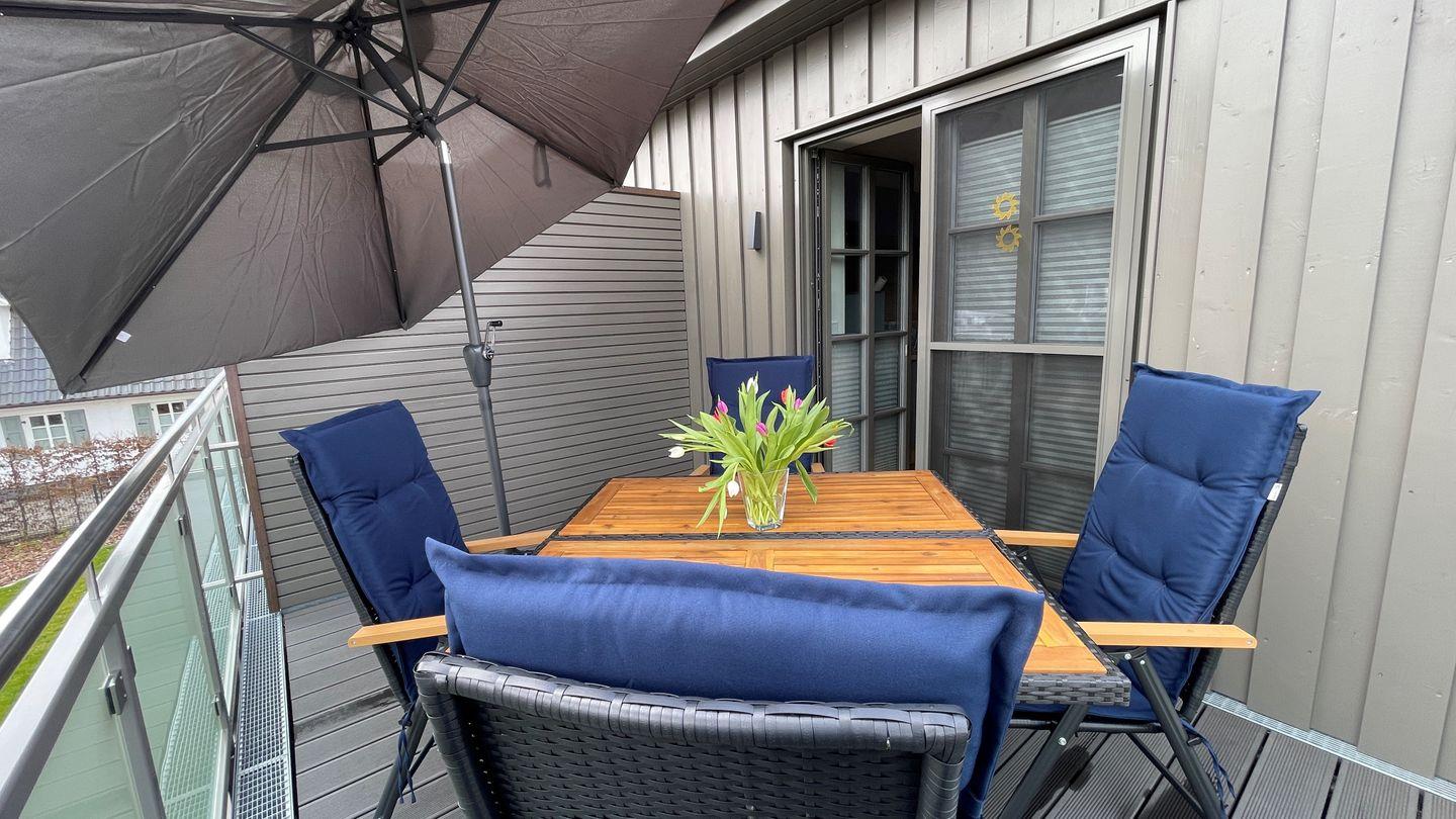 Auf dem großen Balkon in Süd/West-Ausrichtung lässt es sich gut