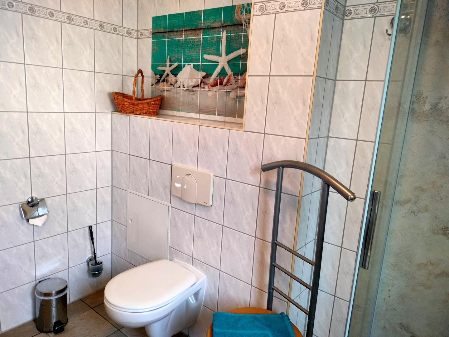 Das Gäste-WC befindet sich im OG, das Hauptbad mit ebenerdiger Dusche im EG.