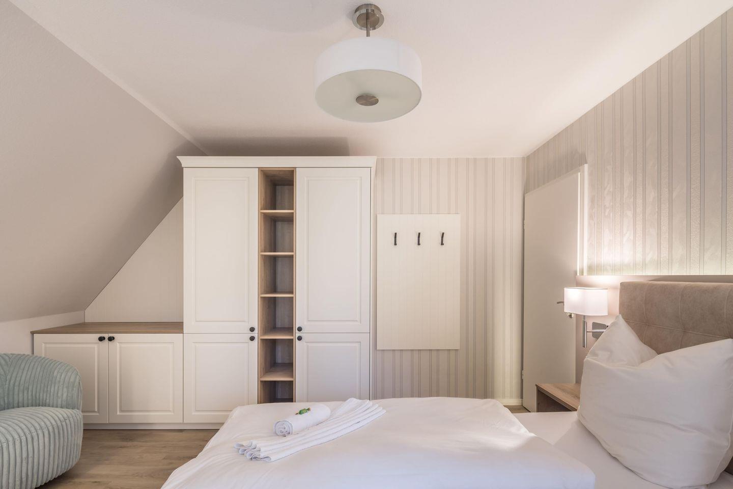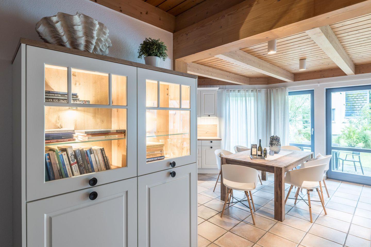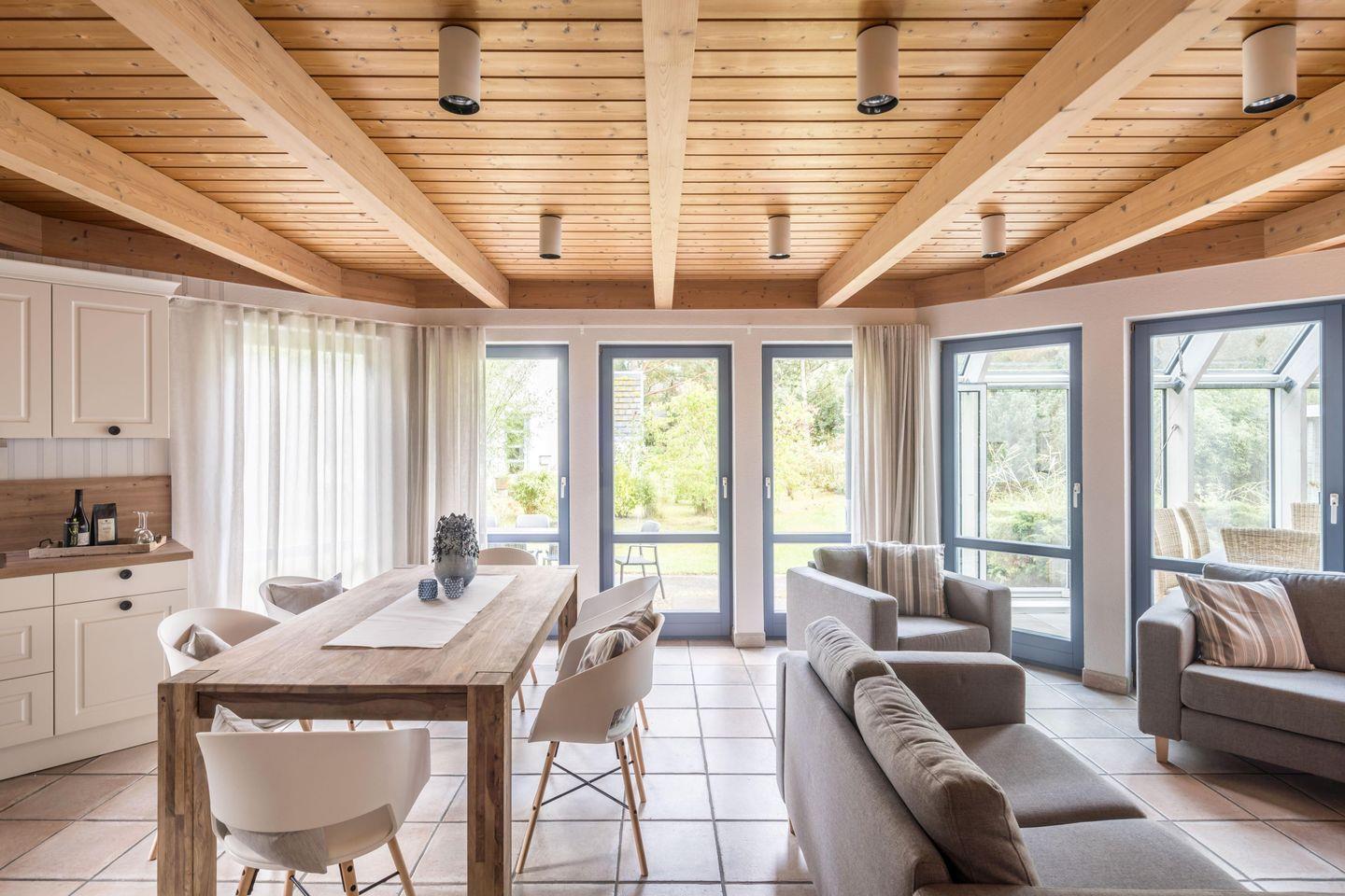 Nur wenige Minuten hinter dem Ostseedeich liegt diese wunderschöne Haushälfte, welche 2025 komplett neu renoviert wurde. Das Haus wird für max. 6 Personen vermietet. Im unteren Bereich befindet sich das Wohnzimmer mit offener Küche und Kaminofen sowie ein beheizter Wintergarten, ein Gäste-WC mit Dusche sowie ein Hauswirtschaftsraum mit separatem Eingang. Im Obergeschoss befinden sich zwei große Schlafzimmer mit jeweils einem Doppelbett sowie ein Zimmer mit einem Etagenbett für zwei Kinder. Auf derselben Etage befindet sich ein geräumiges Bad mit Wanne sowie Dusche. Im Außenbereich steht (gegen Aufpreis von 35 € / Woche) eine Sauna zur Eigennutzung zur Verfügung. Zum Haus gehören ebenfalls zwei PKW Stellplätze.