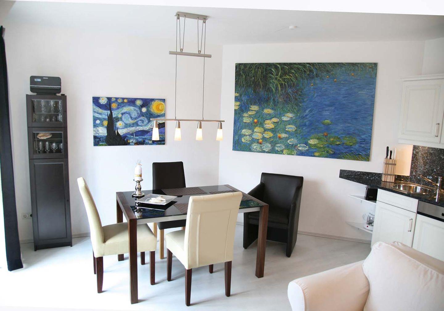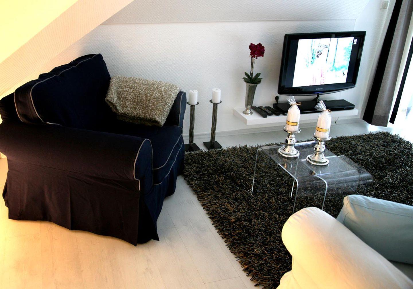 Genießen Sie die geschmackvoll-exklusive Atmosphäre u.a. mit den tollen Bildern, dem neuen kuscheligen Ledersofa, dem HD-Fernseher, der Fußbodenheizung, der hübschen Essgruppe und...