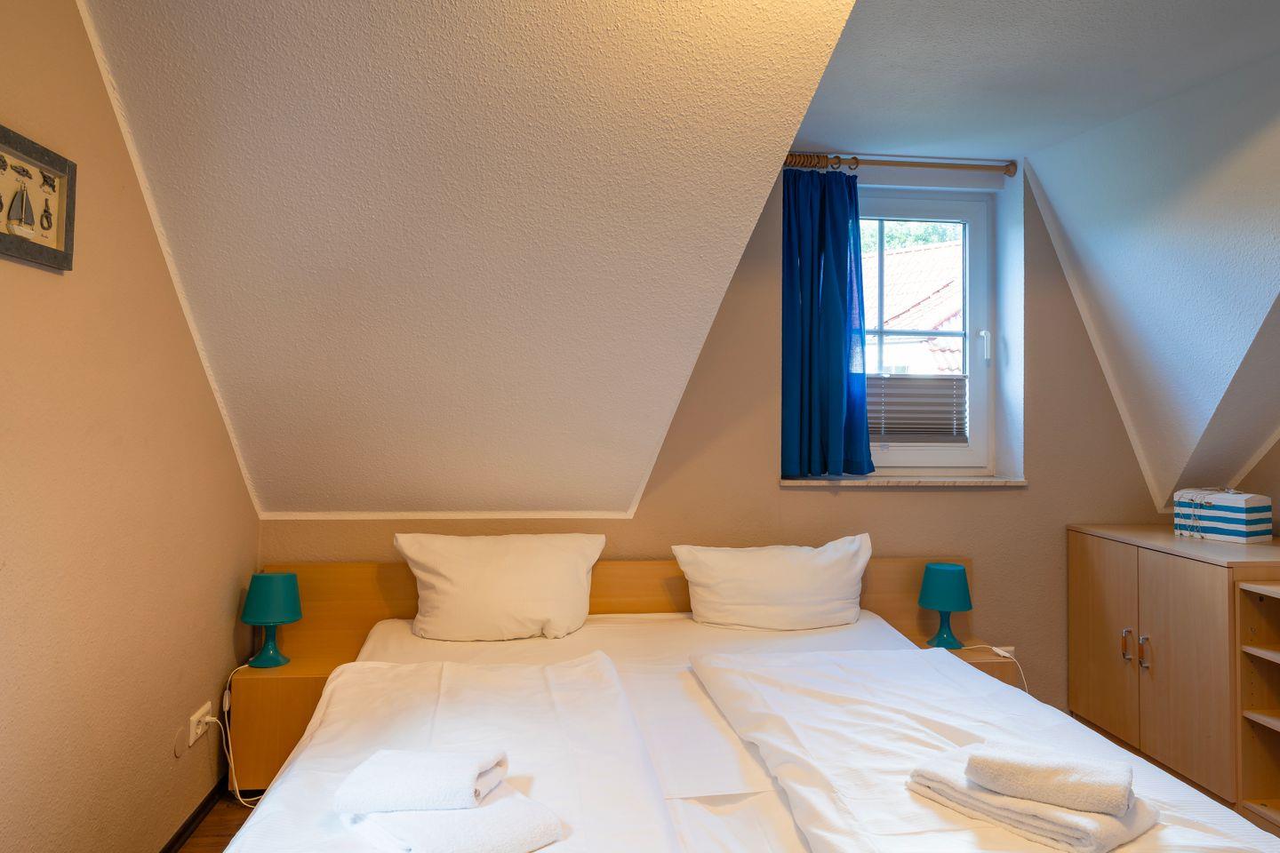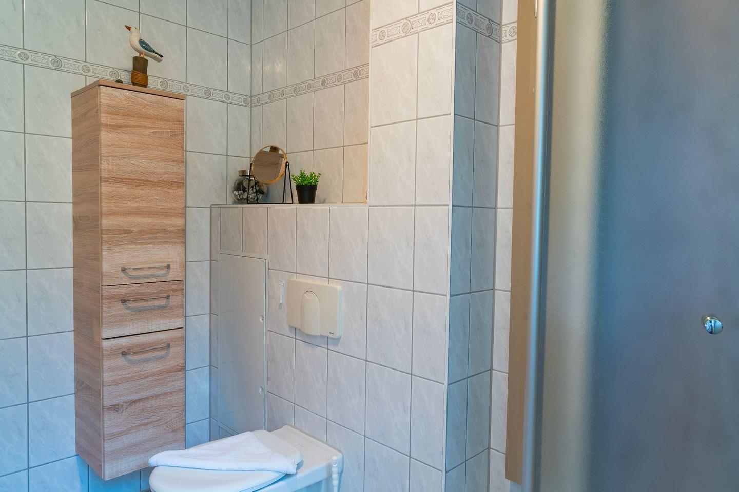 Die Unterkunft verfügt über zwei Schlafzimmer mit insgesamt vier Schlafmöglichkeiten, die durch Teppichboden für eine angenehme und warme Atmosphäre sorgen. Für Ihren Komfort steht Ihnen ein modernes Badezimmer mit Dusche, WC und Haartrockner bereit. Zusätzlich gibt es ein separates Gäste-WC. Alle Fenster im Haus sind mit Fliegengittern und Sichtschutz ausgestattet und lassen sich gut verdunkeln.