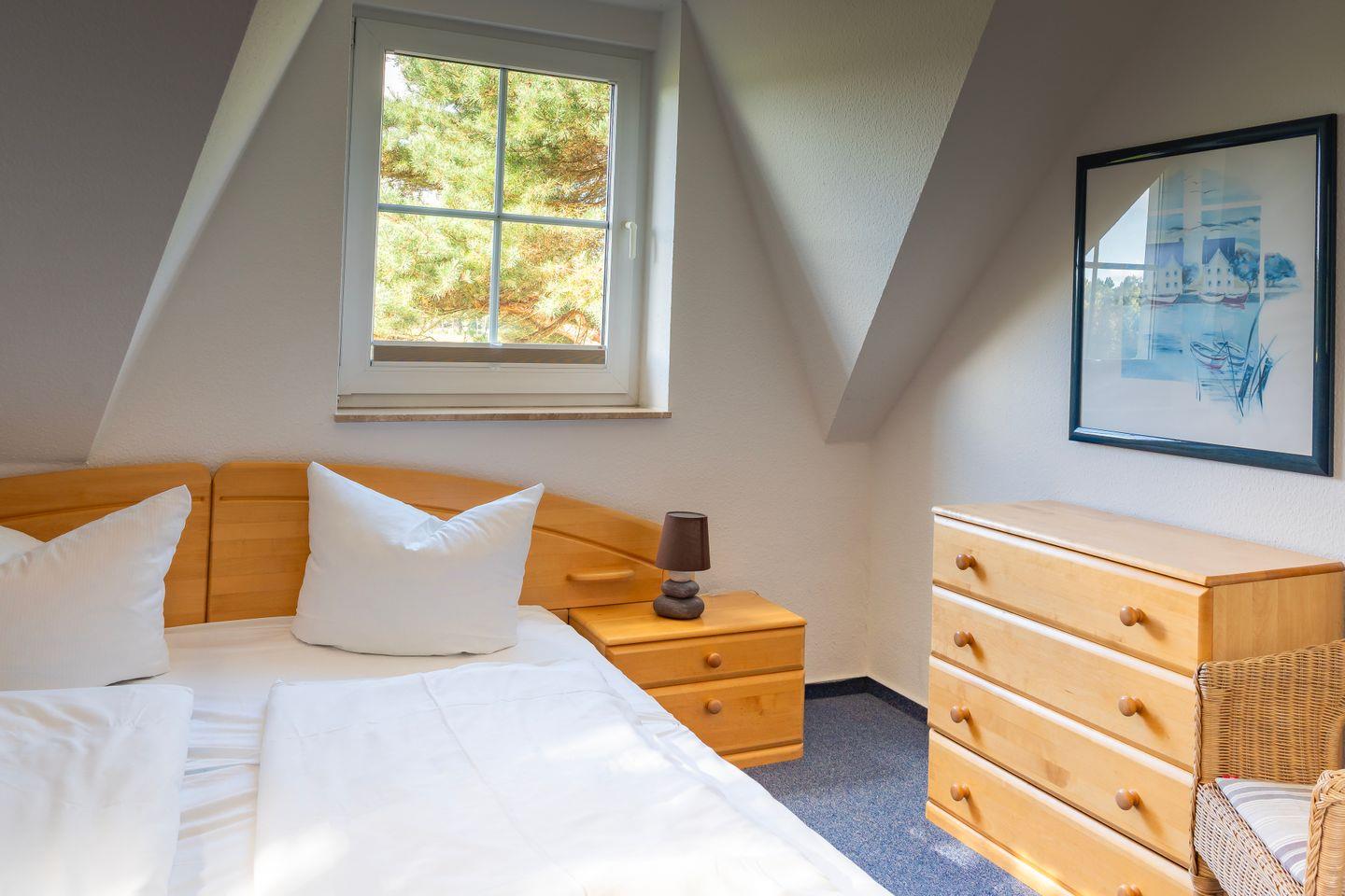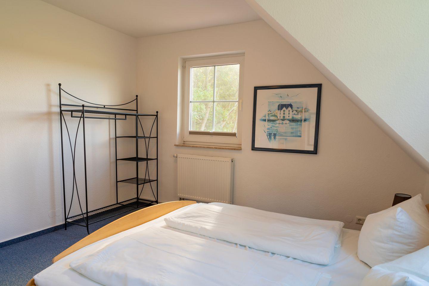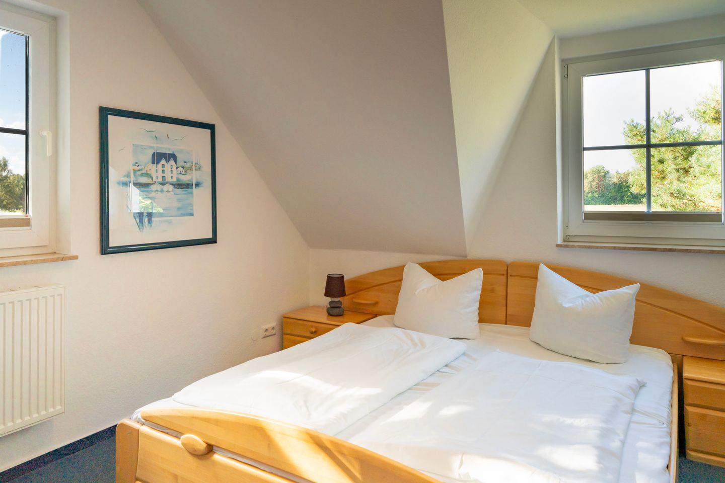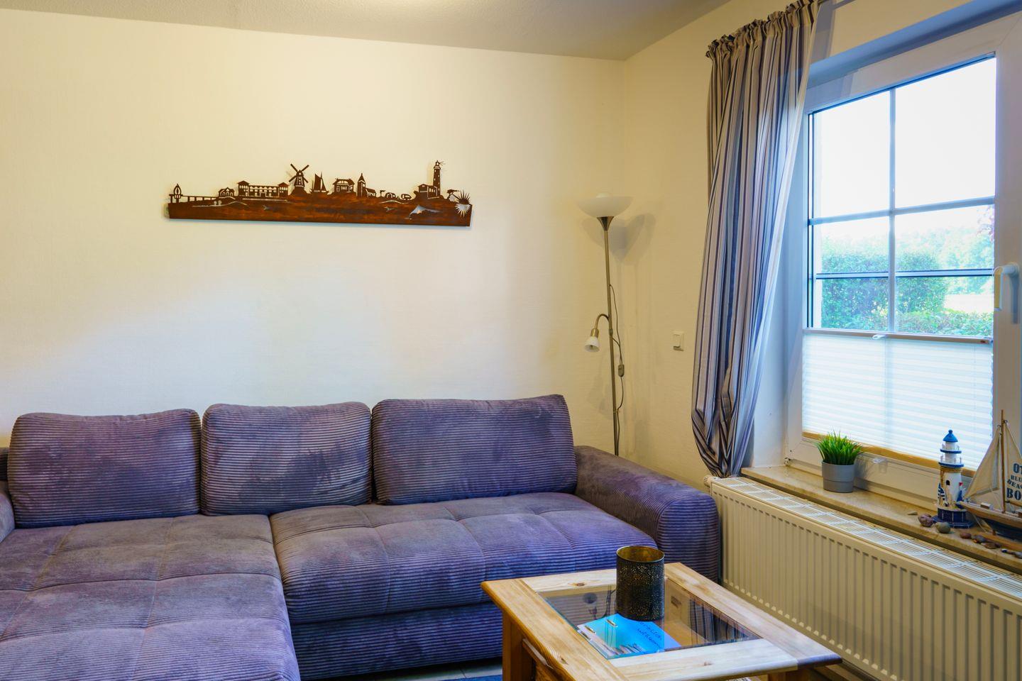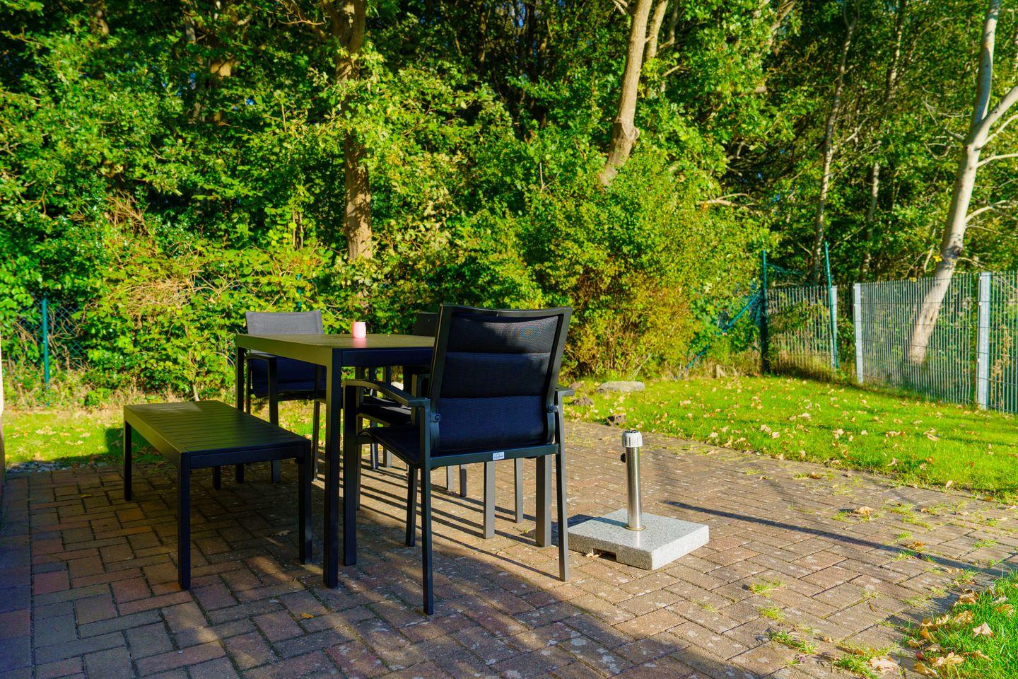 Das Ferienhaus verfügt über zwei separate Schlafzimmer mit Teppichboden, die ausreichend Platz und Stauraum bieten und durch Sichtschutz an allen Fenstern ein hohes Maß an Privatsphäre gewährleisten. Das Wohnzimmer ist offen gestaltet und durch den Fliesenboden pflegeleicht sowie modern ausgestattet. Dank einer großzügigen Sofalandschaft, zwei Fernsehern, DVD- und CD-Player können Sie entspannte Abende verbringen. An warmen Tagen genießen Sie den direkten Zugang zur möblierten Terrasse und zum eigenen Garten, der mit einem Holzkohlegrill, Sonnenschirm und Gartenmöbeln zum Verweilen und zu gemeinsamen Mahlzeiten im Freien einlädt.