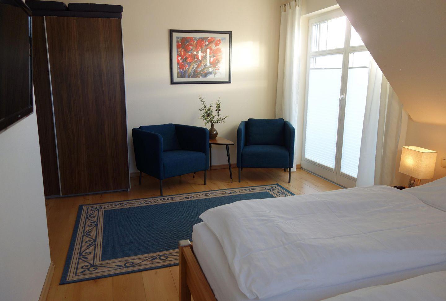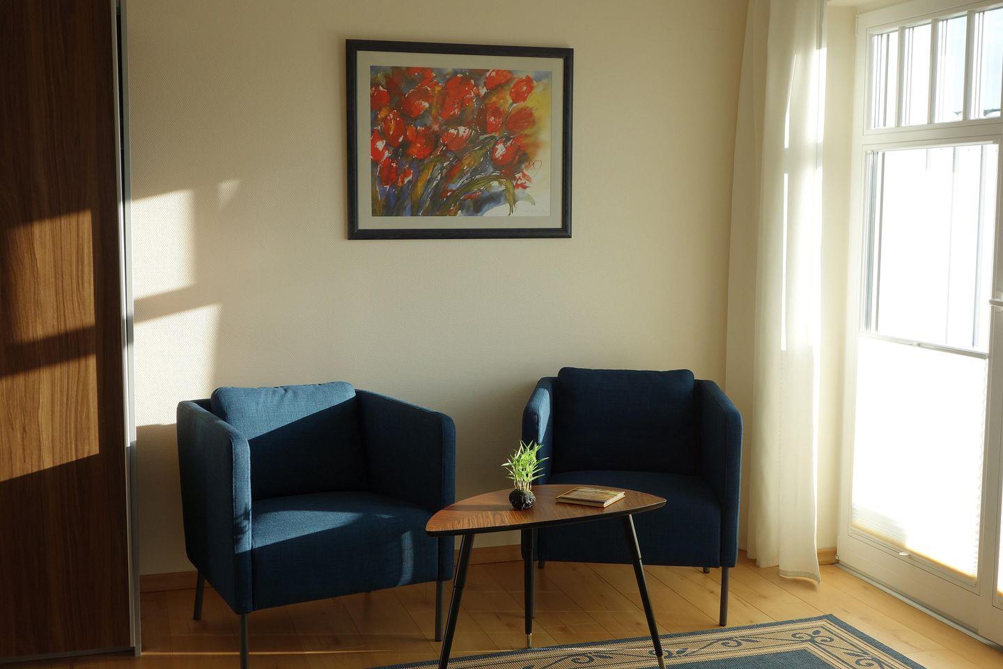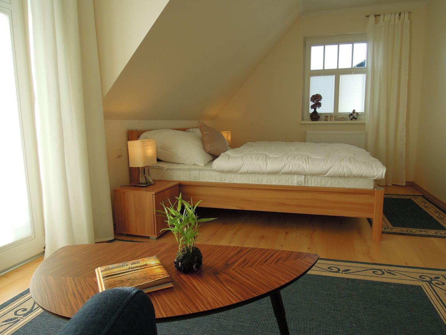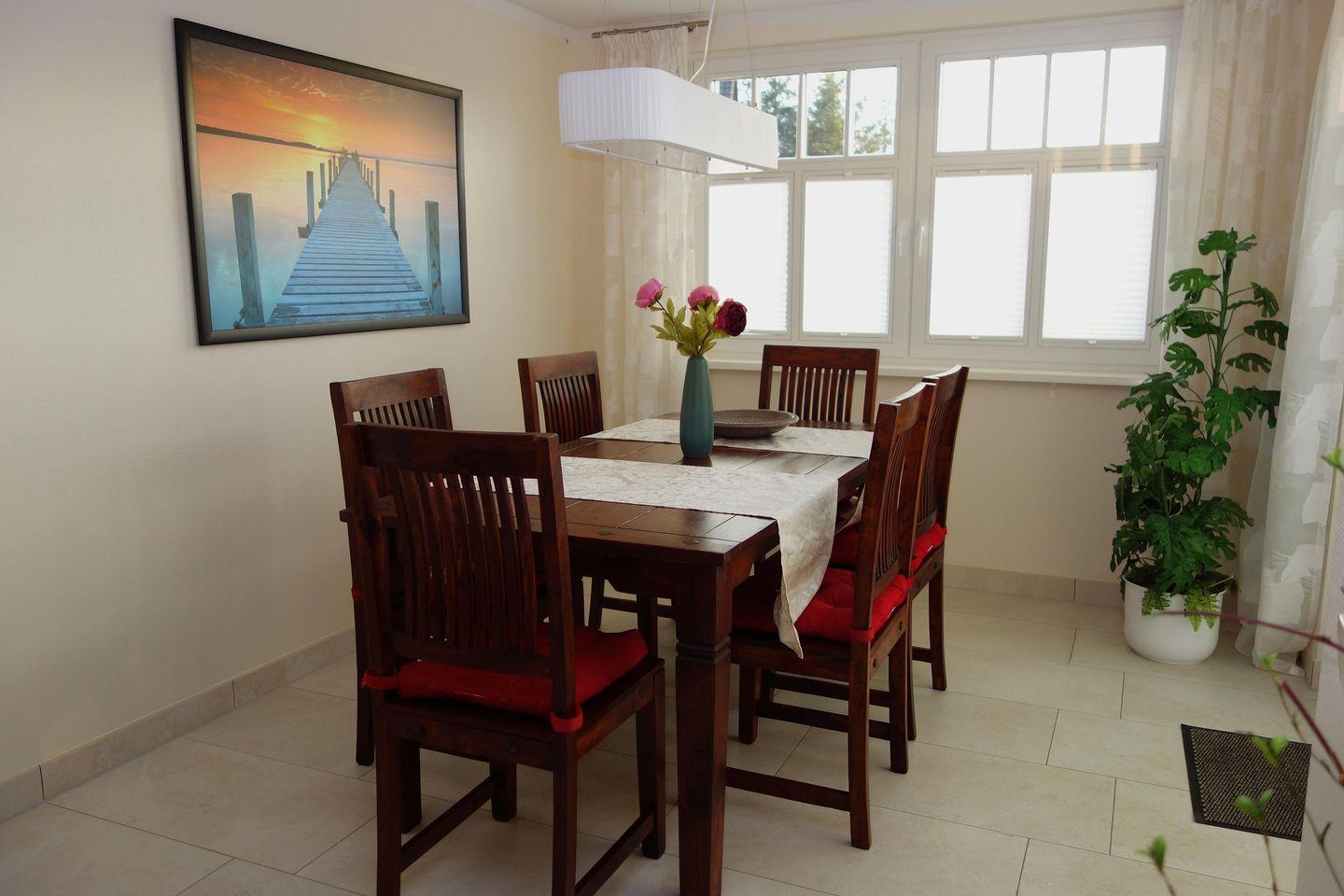 Die 115 qm große Doppelhaushälfte verfügt über drei Etagen und kann mit maximal 6 Personen angemietet werden. Im Erdgeschoss befinden sich das Wohnzimmer mit Kaminofen sowie das angrenzende Esszimmer mit direktem Zugang zum großen Garten. Die modern ausgestattet Küche mit Kühlschrank und Geschirrspüler bietet alles, was man braucht. Im 1. Obergeschoss befinden sich 2 Schlafzimmer mit gemütlichen Doppelbetten und im Dachgeschoss zwei komfortable Einzelbetten. Genießen die integrierte Sauna, den Blick vom Balkon oder schöne Stunden im Garten. Im Haus Helene stehen Ihnen zwei Parkplätze zur Verfügung.
