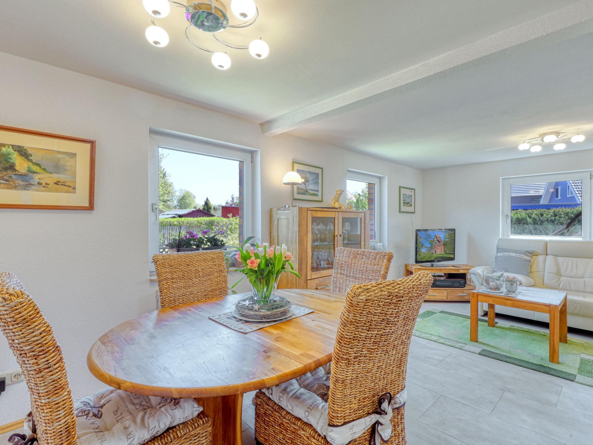 Cosy single-family house "Meeresrauschen", 2 storeys, built in 1975, renovated in 2021. In the resort, in a quiet position in the residential district, 350 m from the beach. Private: well-kept terraced garden, 396 m2 (fenced) lawn and wildlife garden. In the house: washing machine. Parking on the premises. Grocery, restaurant 550 m, bakery 400 m, bus stop "Zingst Jordanstrasse" 800 m, sandy beach 350 m. Sailing school 10 km, minigolf 700 m. Nearby attractions: Leuchtturm Darßer Ort 15 km, Hansestadt Stralsund 48 km. Hiking paths: Nationalpark Vorpomm. Boddenlandschaft 17 km.