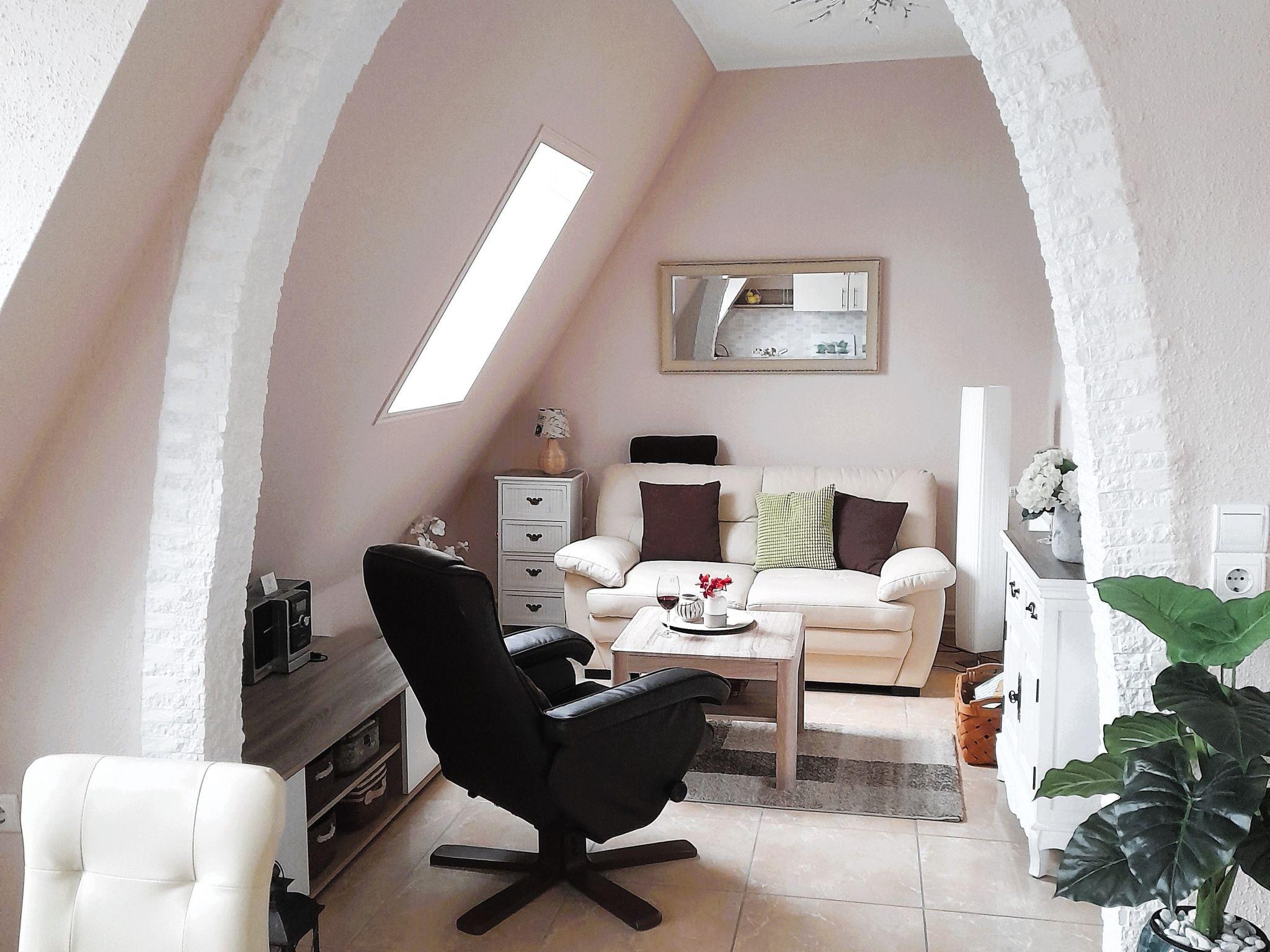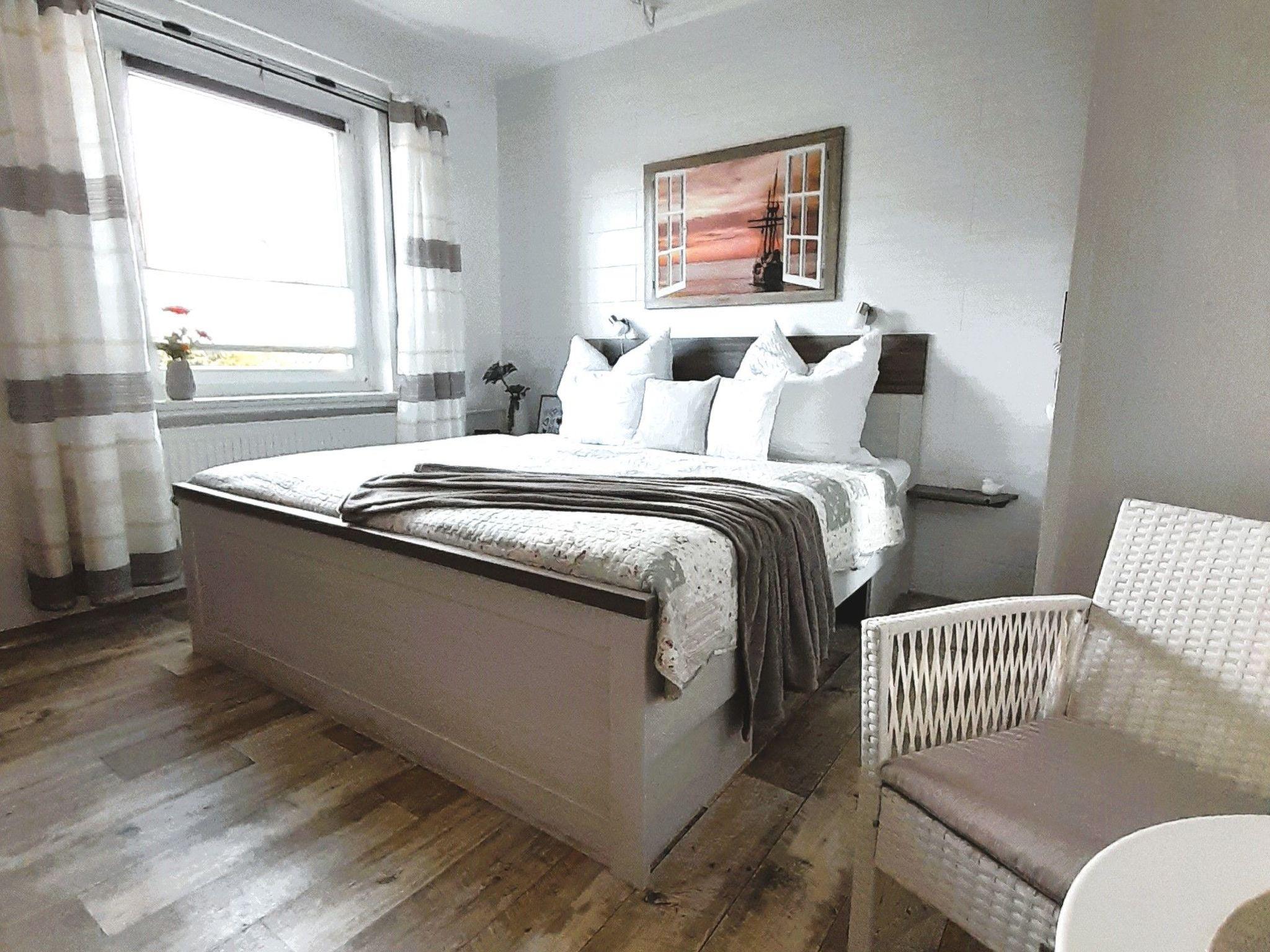 The approx. 52 sqm large, spacious holiday flat is located on the 1st floor. The living room is equipped with a cosy sitting area, SAT / TV and radio as well as Internet / WLAN. In the integrated kitchenette you will find a dishwasher, fridge with freezer compartment, ceramic hob, mini oven, coffee machine, kettle, egg cooker, toaster, crockery etc. In the bedroom there is a double bed (180x200) and a couch, table and armchair small bathroom with WC / shower / hairdryer For "possible bad weather days" you will find numerous books and games in our "separate reading corner" On the property there are 2 terraces equipped with garden furniture and a free car park for your vehicle. Quiet, central location. To the beach crossing -17- it is only 4 walking minutes