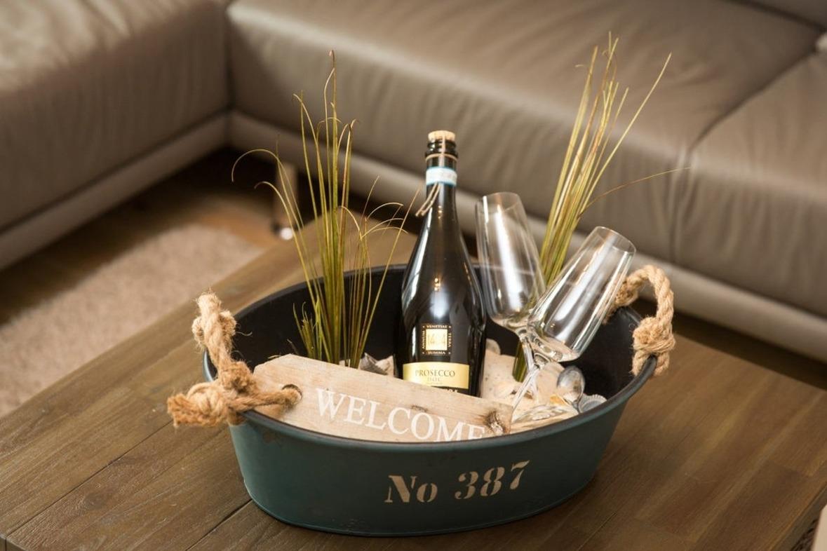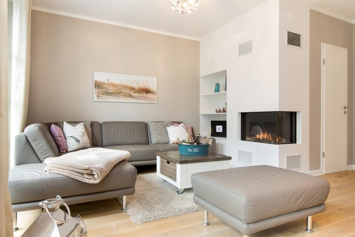 Der offene Wohnbereich verfügt über eine einladende Sofalandschaft, einen Esstisch und große Fenster, die viel Tageslicht hereinlassen. Der Gaskamin im Wohnbereich schafft eine gemütliche Atmosphäre und lädt zum Verweilen ein. Die moderne Küche mit Kochinsel ist ausgestattet mit hochwertigen Markengeräten – darunter Geschirrspüler, Backofen und Kapsel-Kaffeemaschine. Das Ferienhaus verfügt über zwei Badezimmer. Das Hauptbadezimmer bietet zusätzlich eine entspannende Sauna, in der Sie die Wärme genießen und neue Energie tanken können.