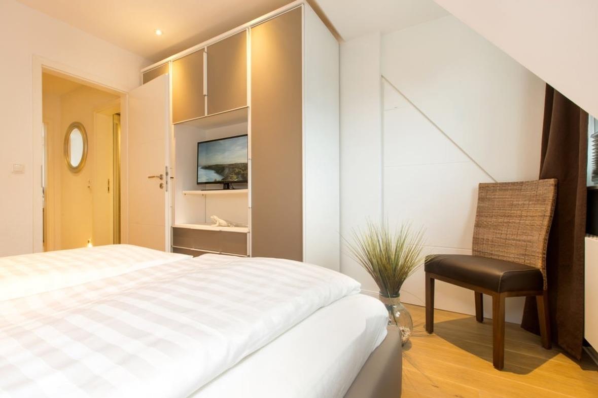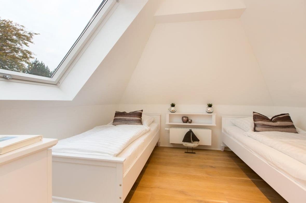 Hinweis: Die Betten sind bei Ihrer Anreise stets frisch bezogen. Bitte beachten Sie, dass grundsätzlich immer nur so viele Betten bezogen werden, wie Personen anreisen. Da das Haus über zwei Doppelbetten und zwei Einzelbetten verfügt, werden bei einer Buchung von vier Personen standardmäßig die beiden Doppelbetten vorbereitet, gleiches gilt auch bei zwei Personen, da wird nur ein Doppelbett bezogen. Wir gehen davon aus, dass gemeinsam reisende Personen ein Doppelbett teilen. Sollten Sie eine andere Schlafaufteilung wünschen, teilen Sie uns dies bitte vor Ihrer Anreise mit, damit wir die Betten entsprechend vorbereiten können. Eine Einsicht in das persönliche Verhältnis der Reisenden besteht selbstverständlich nicht.