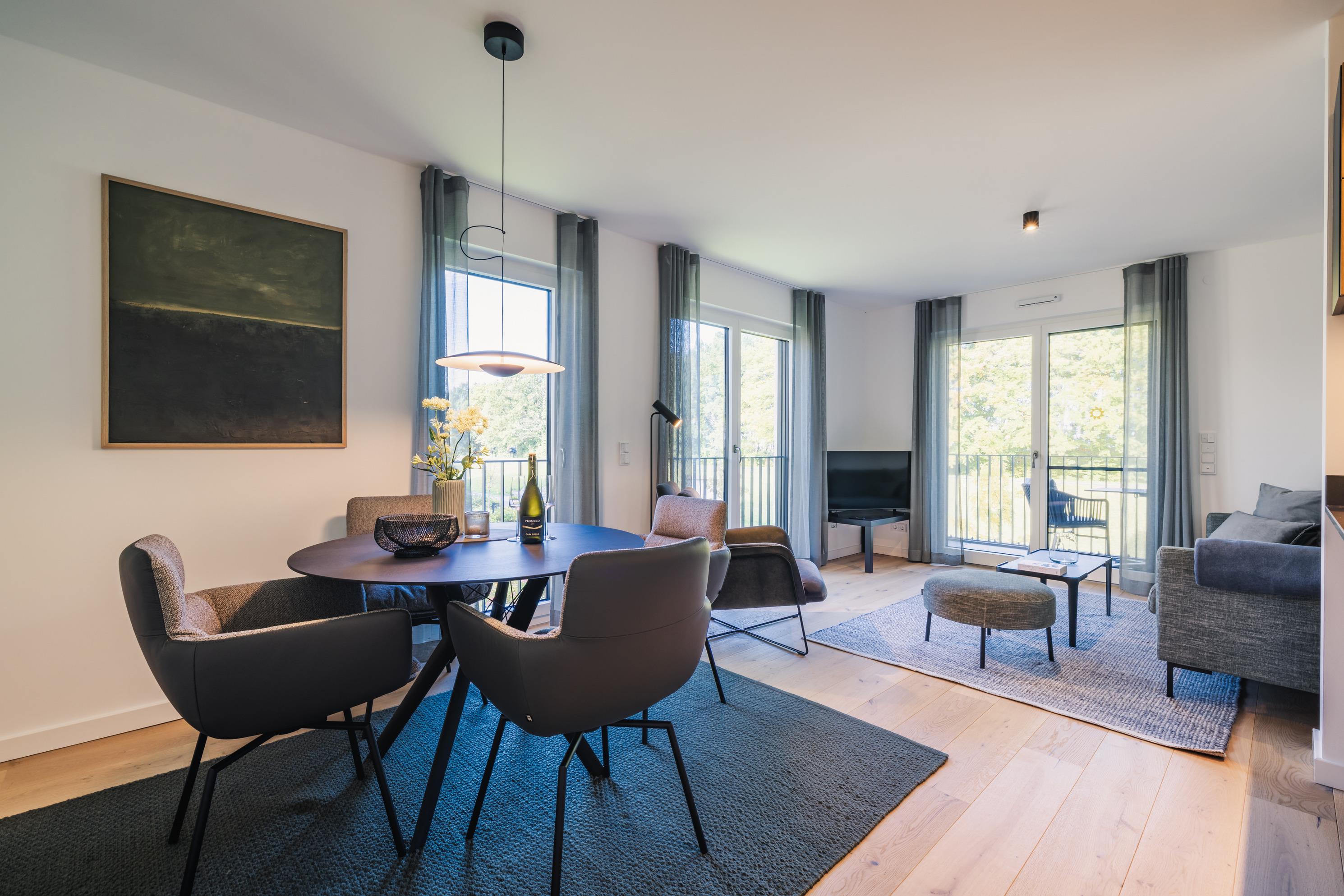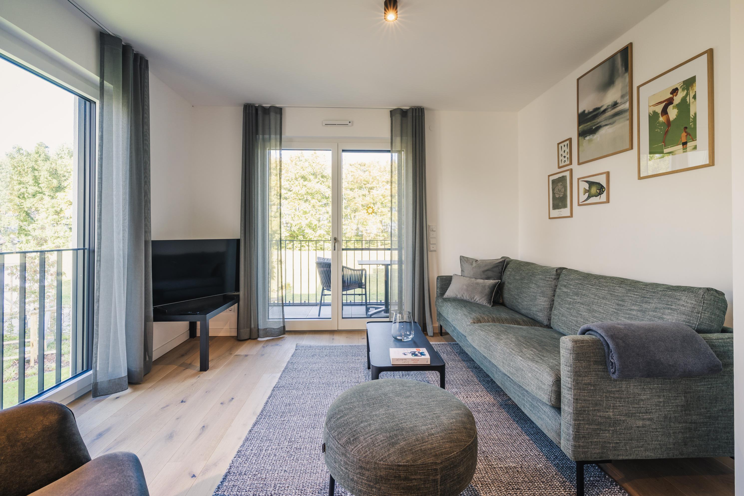 Im ersten Obergeschoss gelegen, bietet diese moderne 2-Zimmer-Appartement ein stimmiges Zusammenspiel aus Design, Funktionalität und entspannter Nähe zur Natur – perfekt für eine erholsame Auszeit.