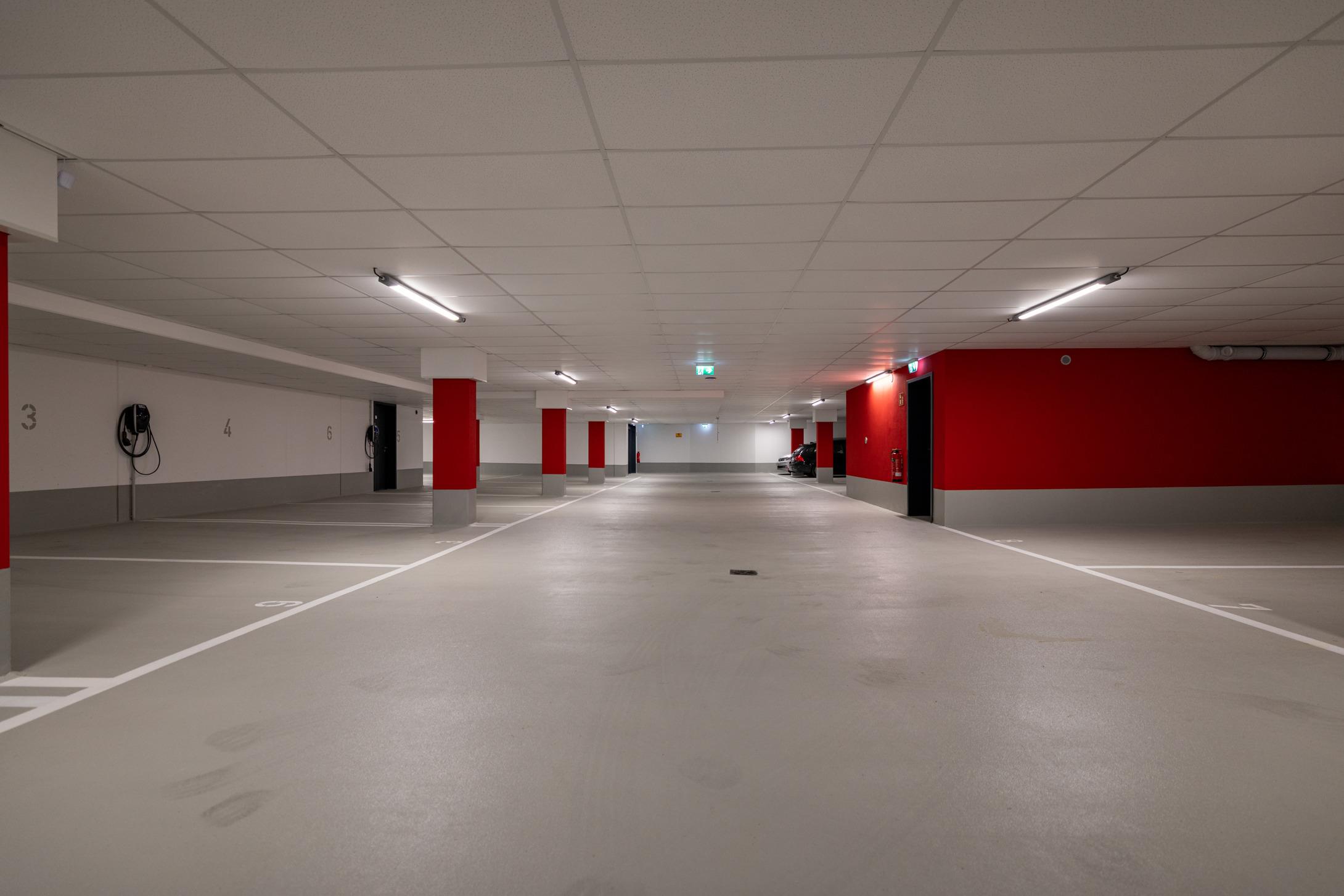 Privater Tiefgaragenstellplatz mit Ladefunktion, bequem erreichbar über einen Autoaufzug