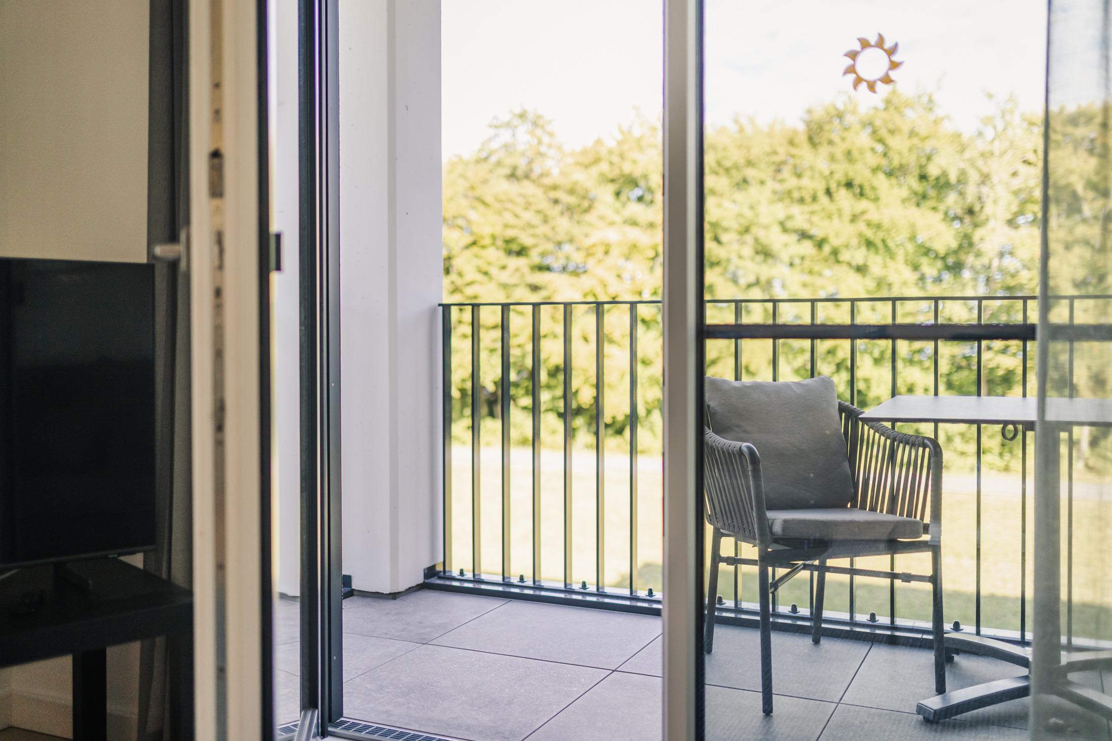 Der angrenzende Balkon mit Nordwest-Ausrichtung sorgt an warmen Tagen für angenehme Frische und lädt zum entspannten Verweilen unter freiem Himmel ein.