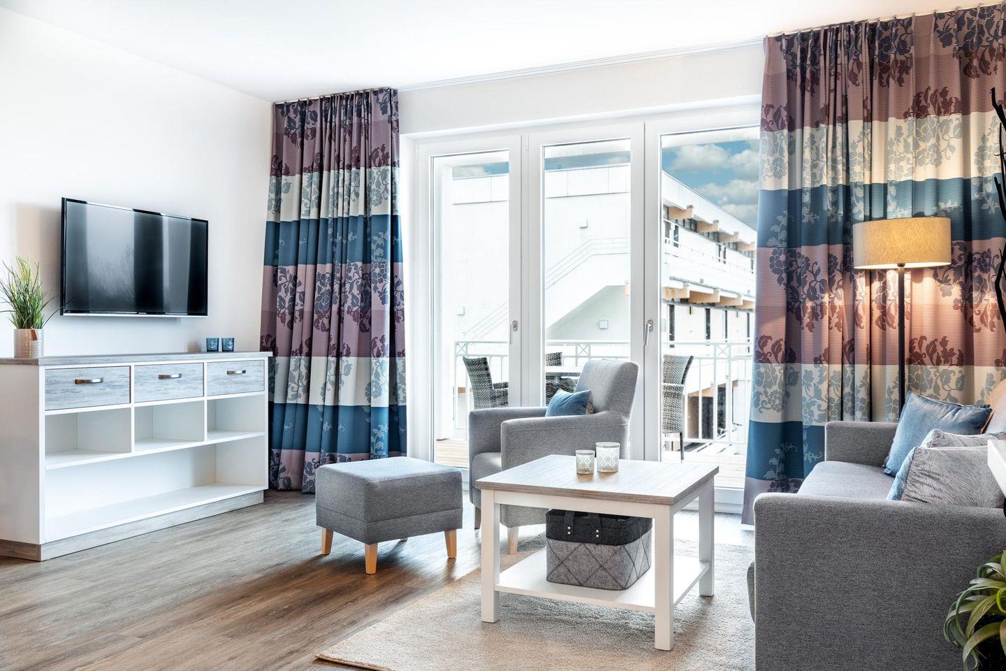 Das 58 m² große 2-Zimmer Apartment ist für bis zu 4 Personen geeignet. Besonders hervorzuheben ist der sonnige und überdachte Balkon in West-Lage; hier genießt ihr das wohltuende Meeresklima. Auch euer Vierbeiner ist hier herzlich willkommen!