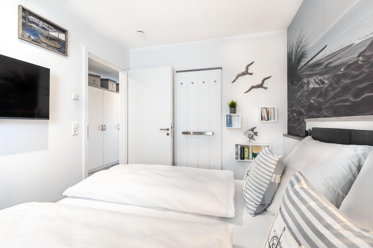 Das 58 m² große 2-Zimmer Apartment ist für bis zu 4 Personen geeignet. Besonders hervorzuheben ist der sonnige und überdachte Balkon in West-Lage; hier genießt ihr das wohltuende Meeresklima.