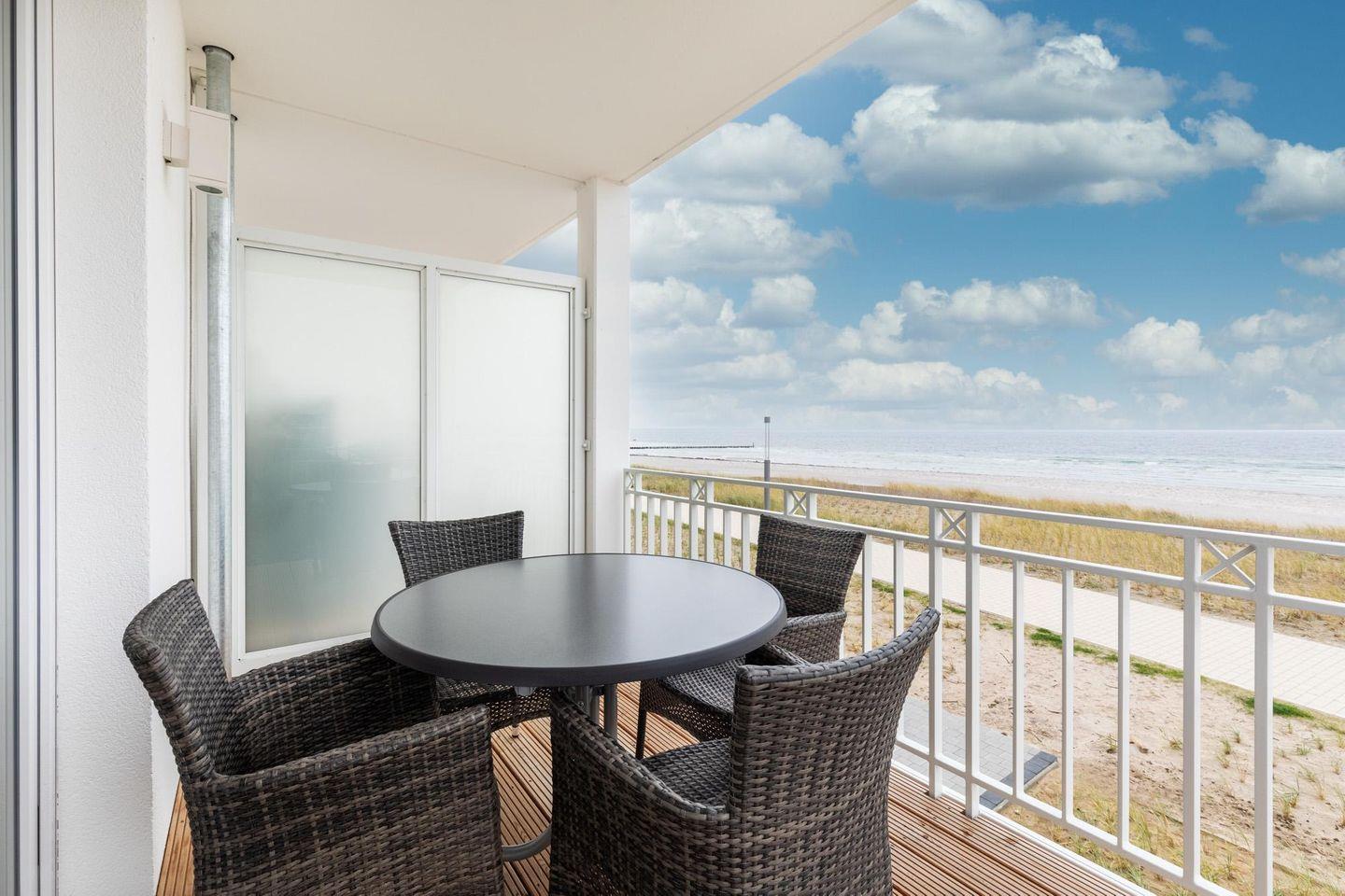 Entspannte und sonnige Stunden mit Panoramablick auf die Ostsee verbringt ihr auf den beiden überdachten und mit Gartenmöbeln ausgestatteten Balkonen in Süd-West- bzw. Süd-Ost-Lage. Der große Balkon mit Strandkorb in südwestlicher Lage mit 12 qm ist sowohl vom Wohnbereich als auch vom Schlafzimmer aus begehbar. Der zweite Balkon in südöstlicher Lage ist 6 qm groß und vom Wohn-Essbereich aus zugänglich.