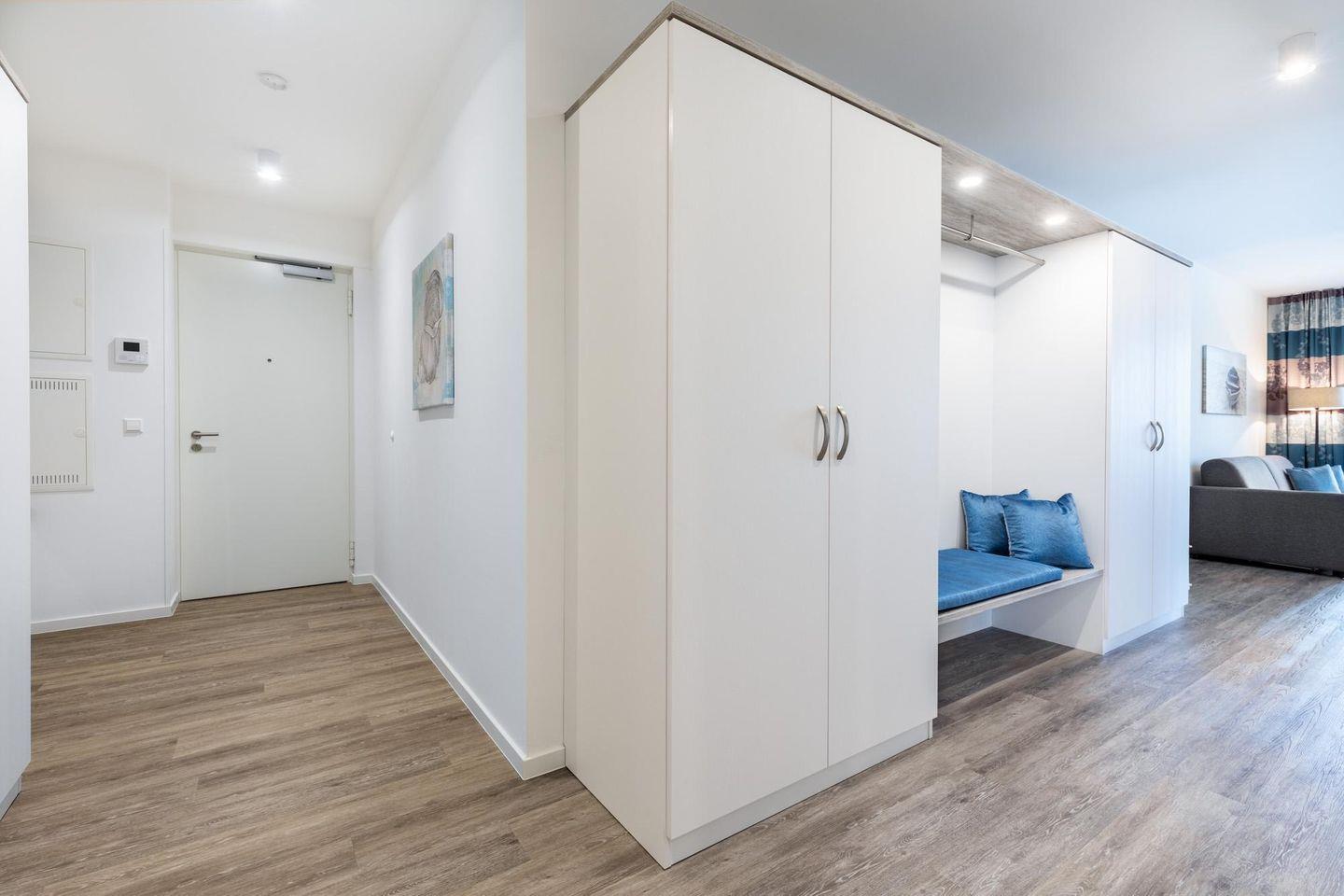Im Foyer mit Rezeption heißen wir euch herzlich willkommen und stehen euch während eures Aufenthaltes bei Fragen gern zur Seite. Auf Wunsch nutzt ihr ganz nach Belieben, die attraktiven Annehmlichkeiten der Apartmentanlage Meerblickvilla - im Erdgeschoss befindet sich ein moderner Saunabereich mit finnischer Sauna, Biosauna und Ruheraum. In der Zeit vom 09.02.- 20.03.2026 steht euch der Saunabereich aufgrund von Instandsetzungsmaßnahmen nicht zur Verfügung.
