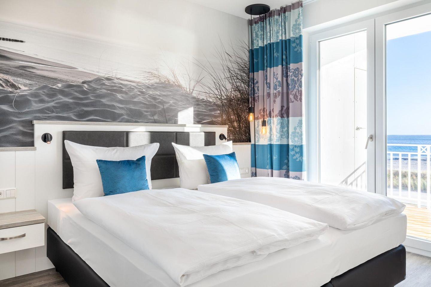 Im modern-behaglichen Wohn-Essbereich befindet sich eine Doppelschlafcouch (1,60 x 1,95 m) und ein großer Flatscreen-TV (43 Zoll). Beide separaten Schlafzimmer bieten hohen Schlafkomfort durch jeweils zwei moderne Boxspringbetten (0,90 x 2,00 m) und sind mit jeweils einem Flatscreen-TV (40 Zoll) und Kleiderschrank ausgestattet. Zwei stilvolle Badezimmer bieten jeweils eine ebenerdige Regendusche, WC, Waschtisch mit Föhn, Handtuchheizkörper und Fußbodenheizung. So beginnt ihr euren Urlaubstag schon morgens ganz entspannt.