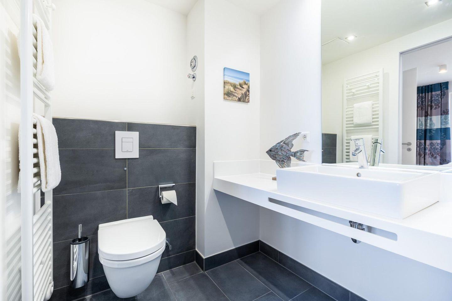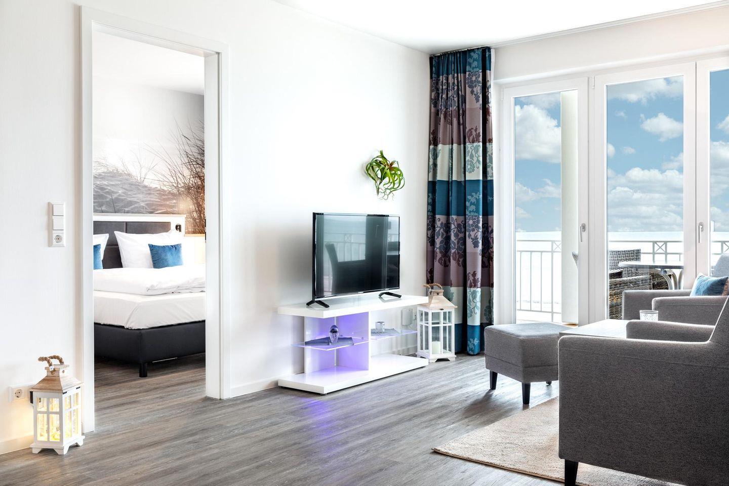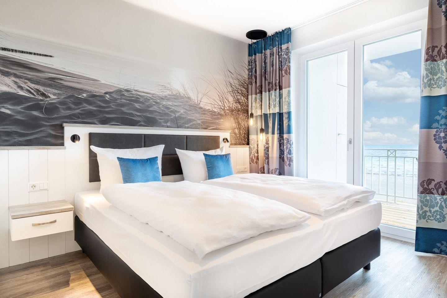 Das 73 m² große 3-Zimmer Apartment ist für bis zu 6 Personen geeignet. Besonders hervorzuheben ist der große, überdachte und sonnige Balkon in Süd-Ost-Lage; hier genießt ihr einen wunderschönen Meerblick auf die Ostsee und könnt euch am Strandleben erfreuen.