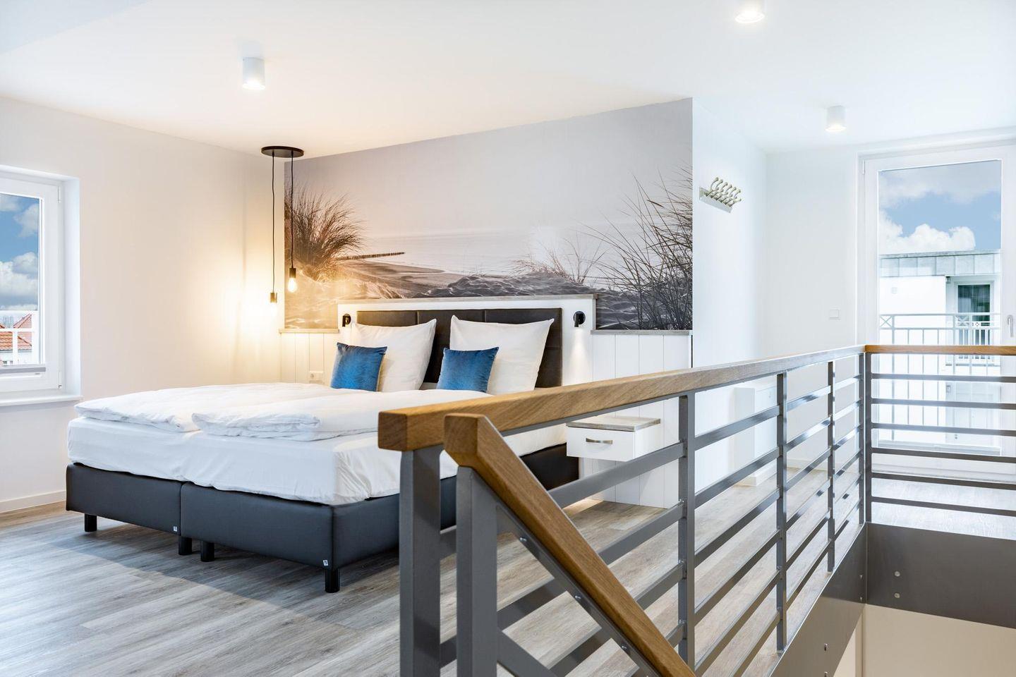 Die 98 m² große und luxuriöse 3-Zimmer Penthaus-Maisonette ist für bis zu 6 Personen geeignet. Das Apartment verfügt über zwei Wohnebenen mit Galerie und einen sonnigen, überdachten Balkon in Süd-West-Lage.