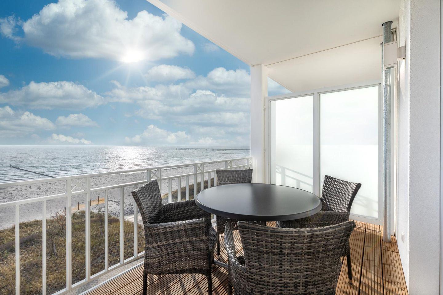 Das 66 m² große 3-Zimmer Apartment ist für bis zu 6 Personen geeignet. Besonders hervorzuheben sind die sonnigen und überdachten Balkone in Süd-Ost-Lage; hier genießt ihr einen wunderschönen Blick auf die Ostsee und das Strandleben schon in der Morgensonne.