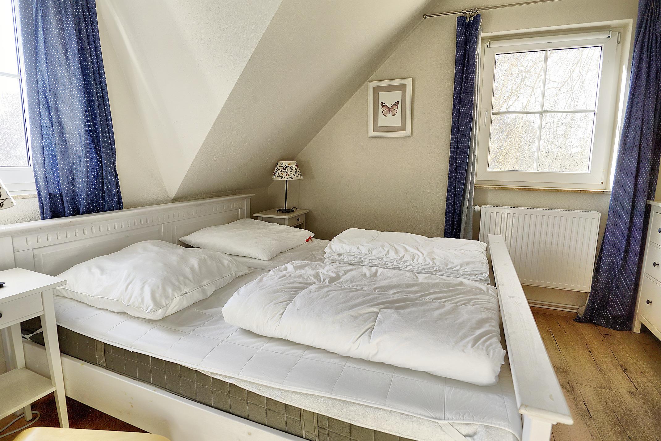 Ferienhaushälfte in Ferienwohnanlage, ruhige Lage, jeweils ein Wohn- /Esszimmer und zwei Schlafzimmer (1 x Doppelbett, 2 x Einzelbetten, 1 x Ausziehbett), Küchenzeile mit Geschirrspüler, Dusche/WC und Gäste WC, Waschmaschine, zum Strand ca. 2 min und zum Zentrum ca 7 min Fußweg, Strandübergang 15