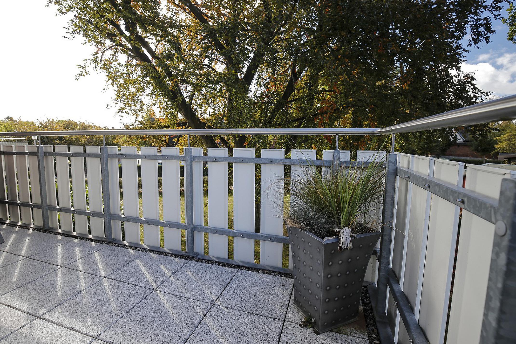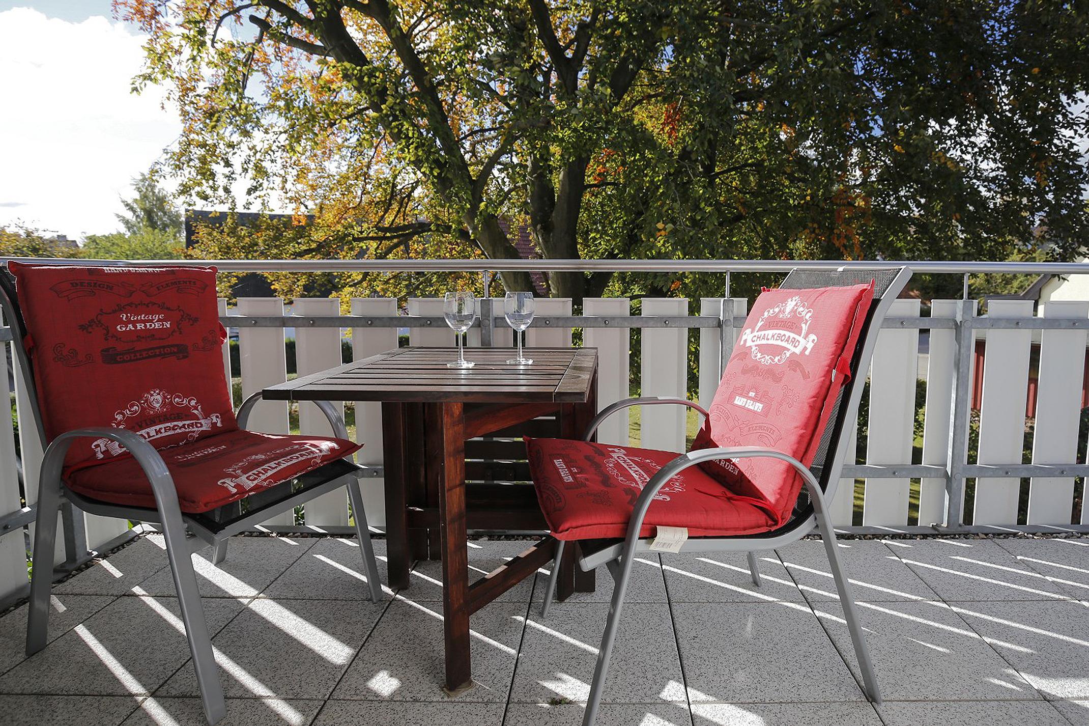 Sie können aber auch Ruhe und Entspannung auf dem großen Südbalkon finden, wo das Blätterdach der alten Rotbuche die Sonnenstrahlen hindurch blinzeln lässt.