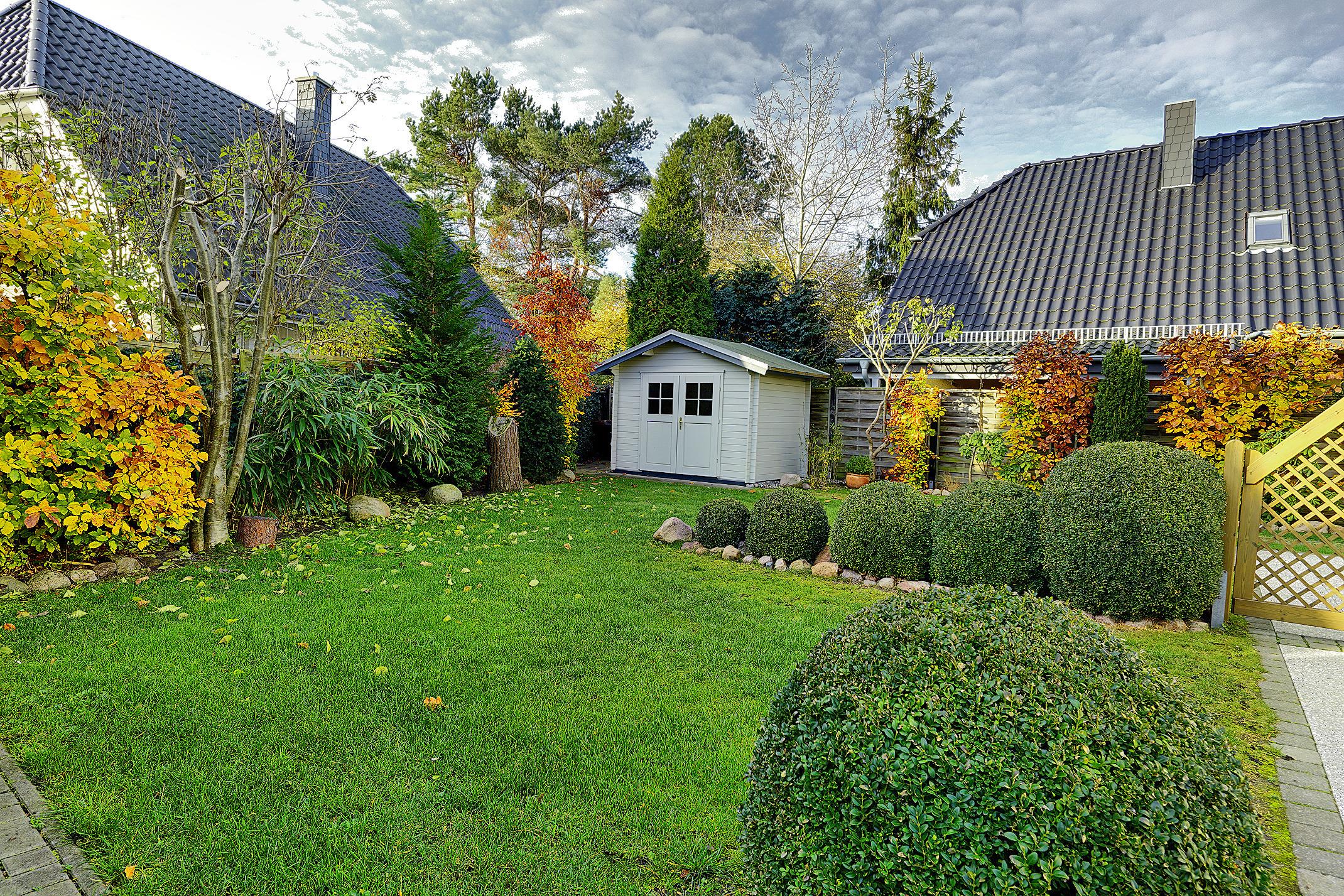 Eine Terrasse sowie ein großen Garten mit den entsprechenden Gartenmöbeln lädt zum Verweilen ein.