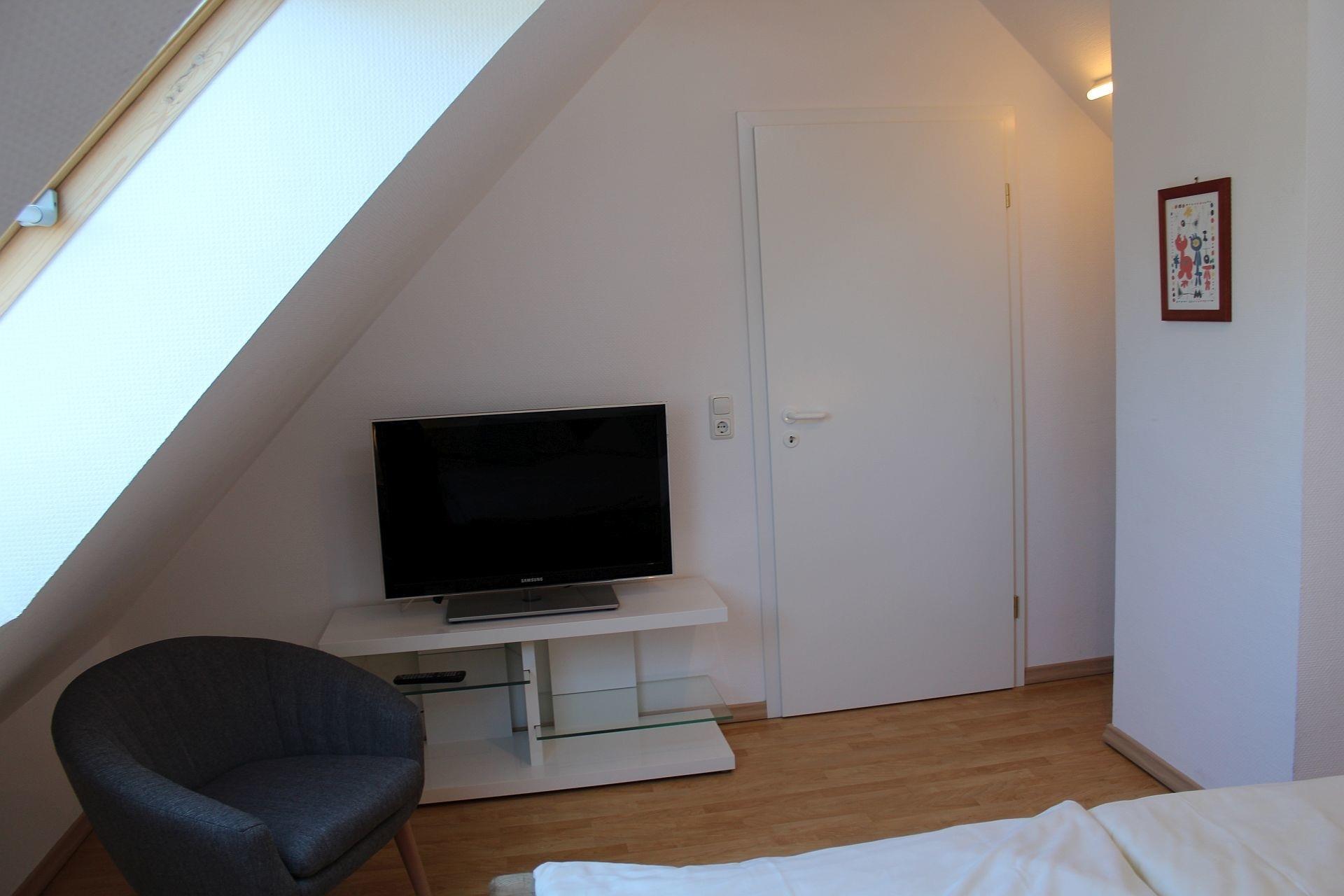 Stilvolle Ferienwohnung in zentraler Lage, für 2-4 Personen, 1. Etage (3 Zimmer, 70 qm), separater Eingang über eine Außentreppe, 2 Schlafzimmer, 1 Wohn/Schlafzimmer, Kaminofen, voll ausgestattete Küchenzeile inkl. Geschirrspüler, Bad mit Dusche/WC, Gäste WC, Flachbild-TV, Kabelanschluß, HiFi-Anlage, Südbalkon, Parkplatz. Mitbenutzung von Waschmaschine/Trockner gegen Gebühr. Freies W-LAN
