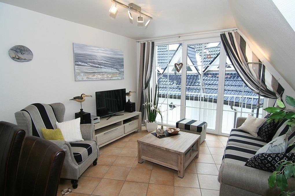 Exklusiv stilvoll ausgestattete Ferienwohnung, 3 Schlafzimmer für max. 4 Personen, großzügige 73 qm Wohnfläche, in Strandnähe (150m), sehr ruhige und bevorzugte Wohnlage, WLAN kostenlos, Wohn-/Esszimmer, Badezimmer, Gäste WC, Abstellraum, 10 Min. Fußweg zum Zentrum, großer überdachter Süd-West Balkon, Balkonmöbel, voll ausgestattete Küche incl. Spülmaschine, Backofen, Ceranfeld, Mikrowelle, umfangreiche Geschirr-und Geräteausstattung, 3 Flachbild-Fernseher, Blueray-DVD/CD/Radio, Fußbodenheizung, Safe, Waschmaschine (Gebühr), Föhn, Insektenschutzgitter in allen Räumen, Verdunkelungs-Gardinen/-Rollos, PKW-Stellplatz, abschließbarer Fahrradschuppen, Bettwäsche und Handtücher gegen Gebühr, Nichtraucher, keine Haustiere . Mindest-Mietzeit 3 Nächte
