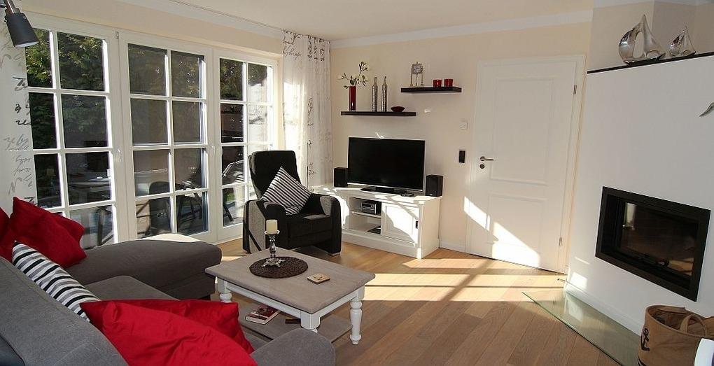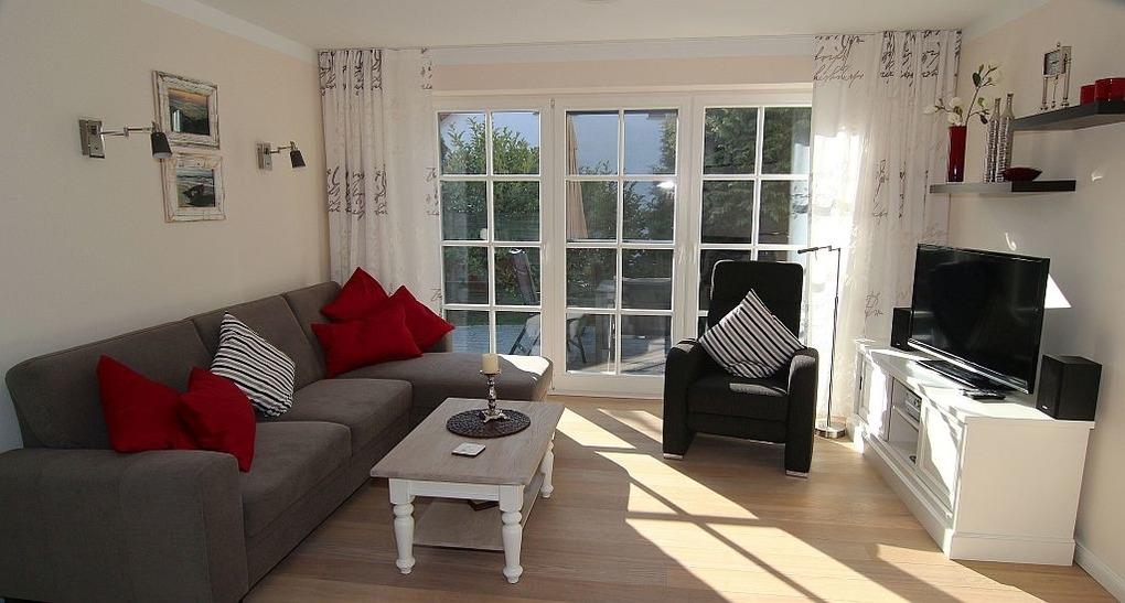 exkl. Erdgeschoß 3-Raum-Wohnung (62 qm) mit Gartenteil und Sonnenterrasse, Heizkamin, WLAN, 2 Schlafzimmer, 1 Badezimmer, 1 Gäste-WC, 2 Kfz Stellplätze, Nichtraucher, keine Haustiere,
