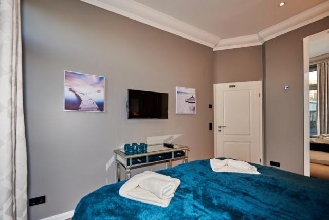 Die Ferienwohnung hat zwei separat und individuell eingerichtete Schlafzimmer, jeweils ausgestattet mit einem Boxspringbett und einem eigenen TV. Sowohl vom Wohnbereich als auch durch die Schlafzimmer haben Sie Zugang zum dazugehörigen Garten und der Terrasse. Neben dem modern gestaltetem Badezimmer mit ebenerdiger Dusche, verfügt die Wohnung außerdem über ein Gäste WC.