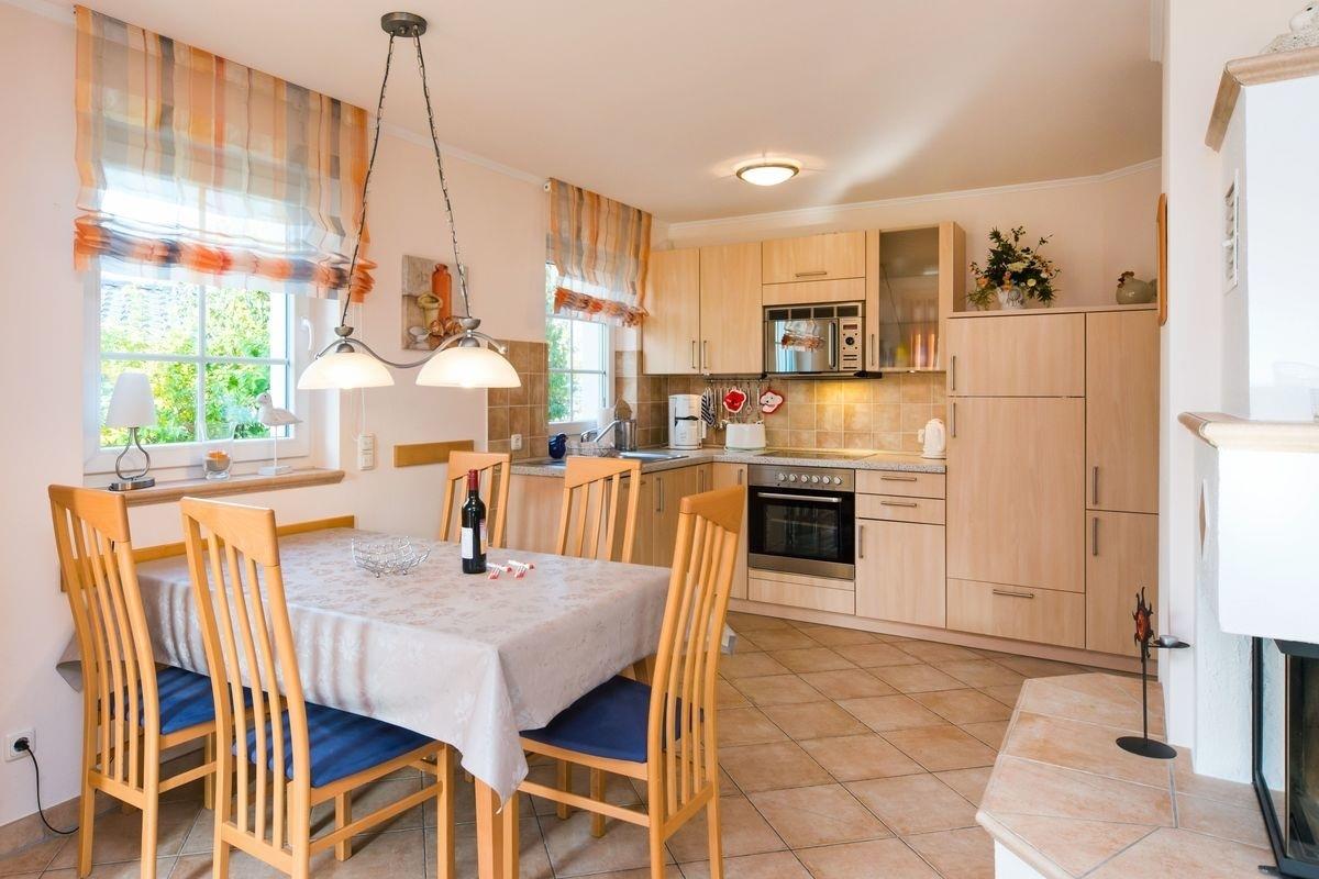 Insgesamt verfügt das Ferienhaus über ein äußerst gemütliches Wohnzimmer mit Kamin, eine voll ausgestattete Küche, die zum gemeinsamen Kochen einlädt, 3 Schlafzimmer (1x Doppelbett, 2x Einzelbetten) und 2 Badezimmer sowie über einen Abstell- und einen Waschraum.