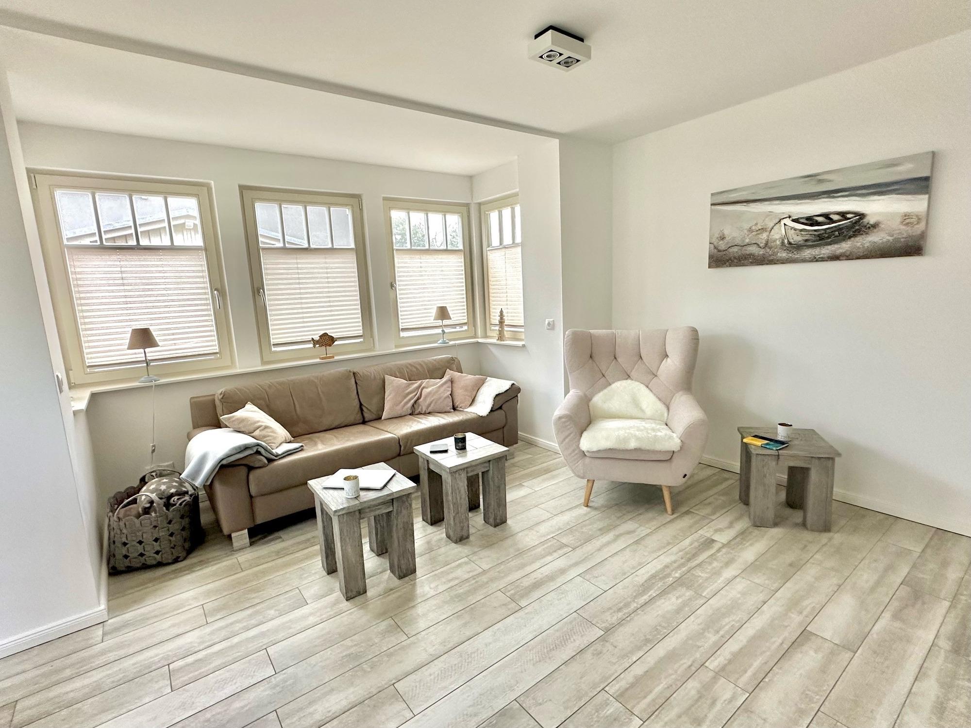 Komfortable nivauvolle Doppelhaushälfte in sehr ruhiger Lage mit ca. 100 qm Wohnfläche, große vollausgestattete Küche, 3 Schlafzimer, 2 Bäder, sehr ruhige Lage, WLAN, 2 Parkplätze, Nichtraucher, keine Haustiere, Entspannung pur, Elektrogrill im Büro Zingst24 für 10€ mietbar.